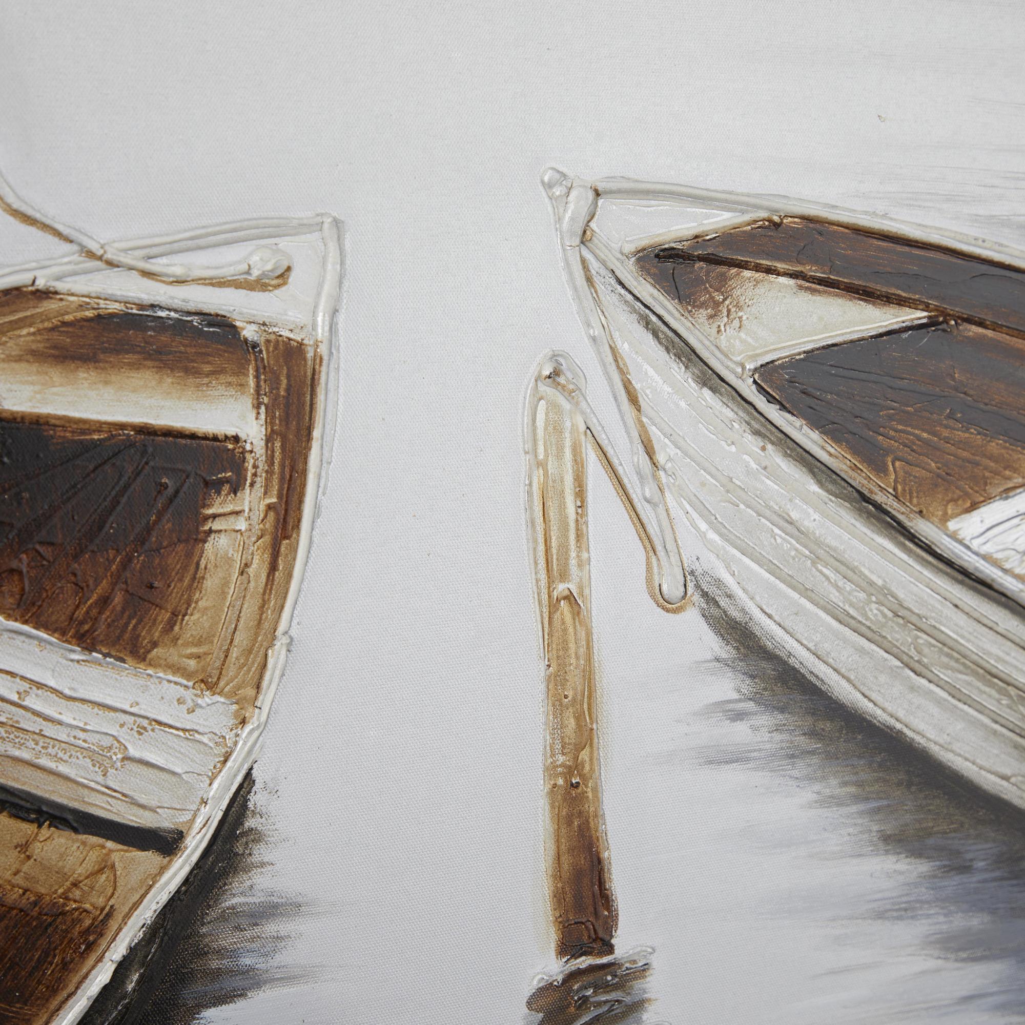 •The coastal artwork for wall decor is meticulously crafted with painted canvas fabric to create stunning wooden boat imagery