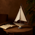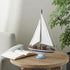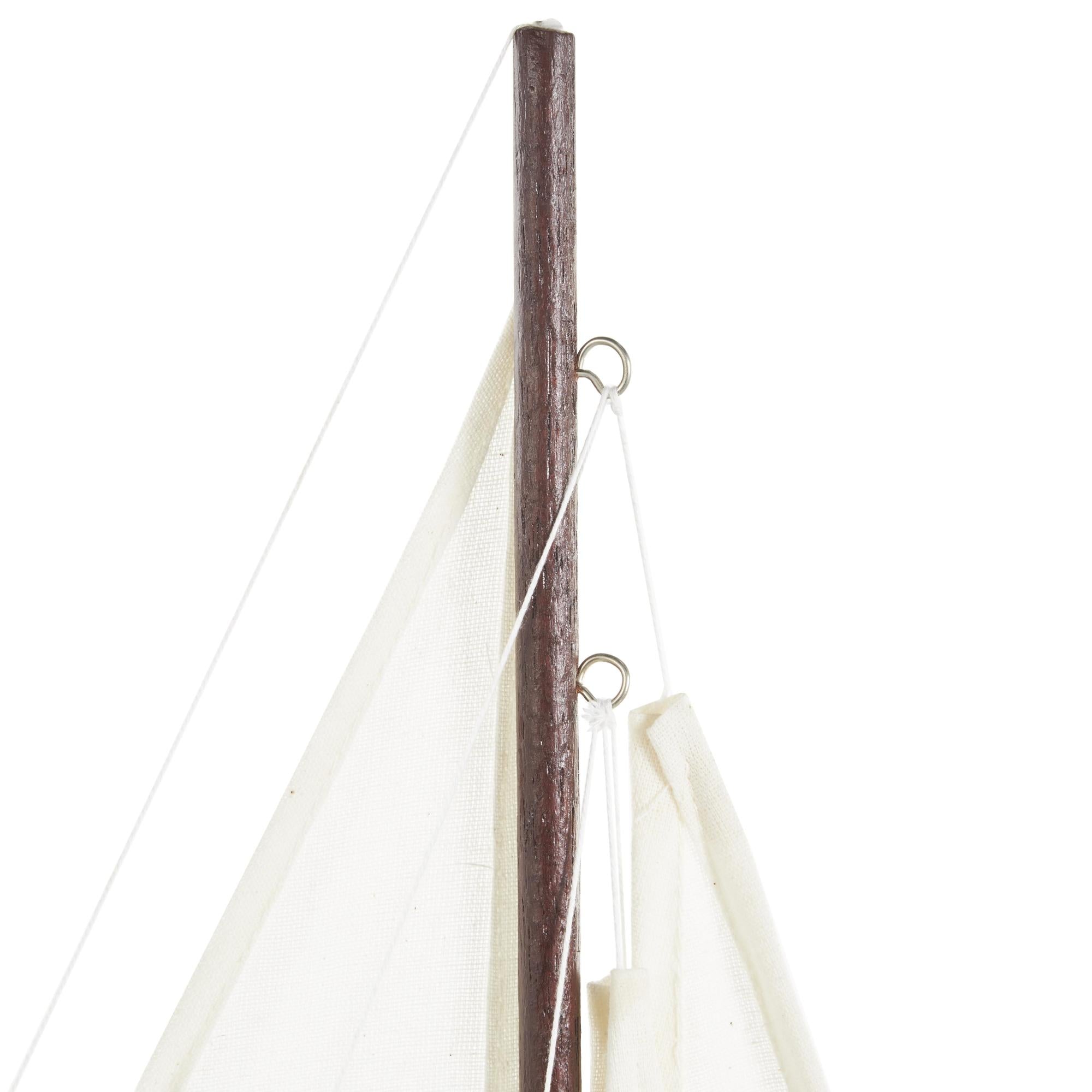 •The construction of this nautical accent statue carefully combines painted wood and canvas materials, attaching the sails with hooks and rope to create a dynamic design