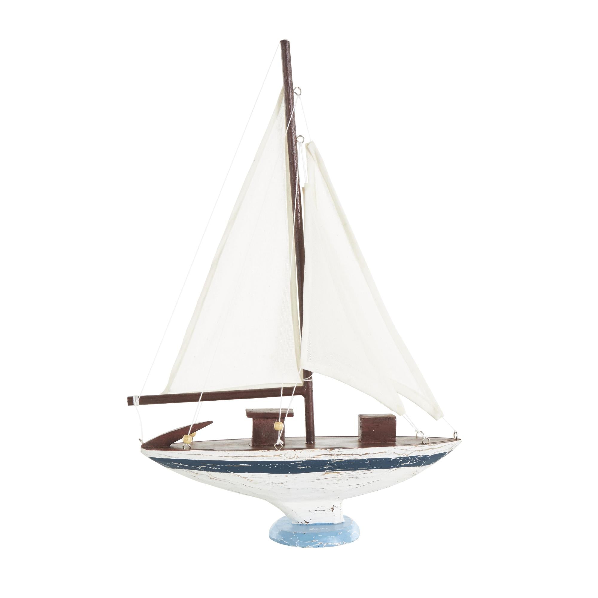 •The shape of this distressed home decor figurine mimics that of a classic sailboat, with three sails and round beaded accents, making it an excellent choice for nautical enthusiasts