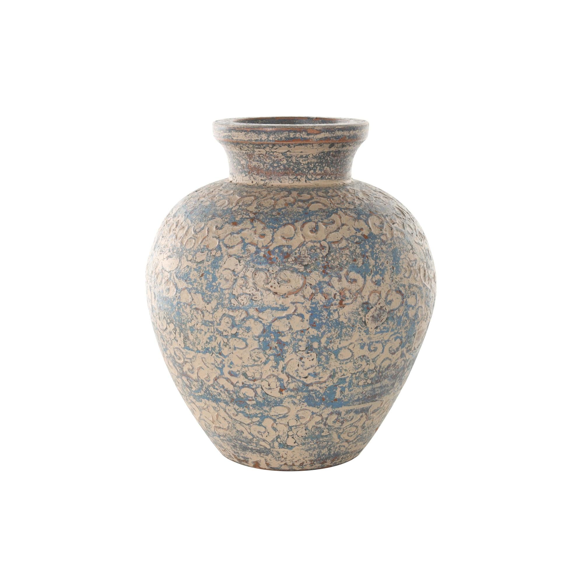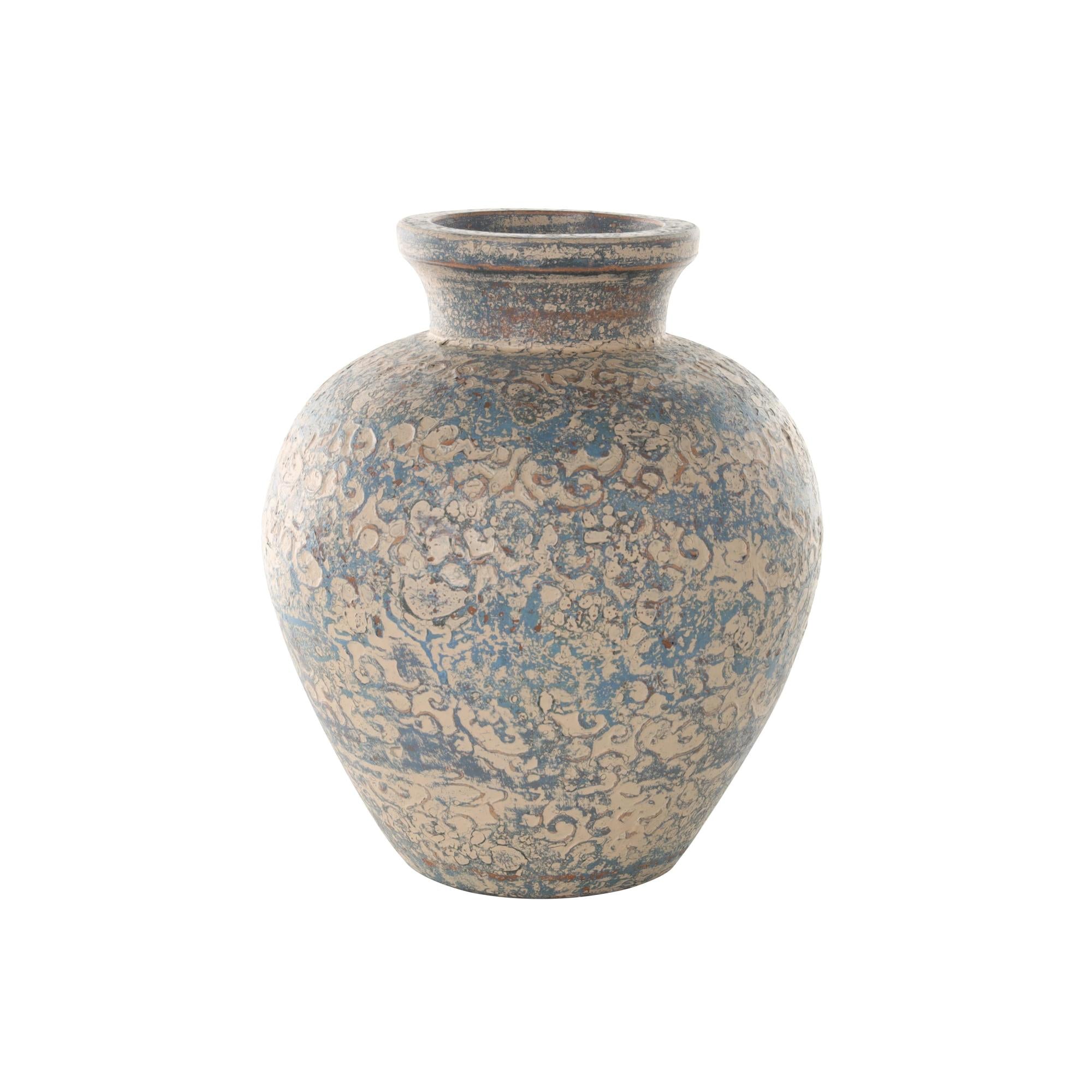 •An exceptional feature of this ceramic vase is its distressed finish, which imparts a weathered and antique charm to the piece