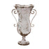 •This iron vase boasts a distressed finish and intricate scroll handles for added charm