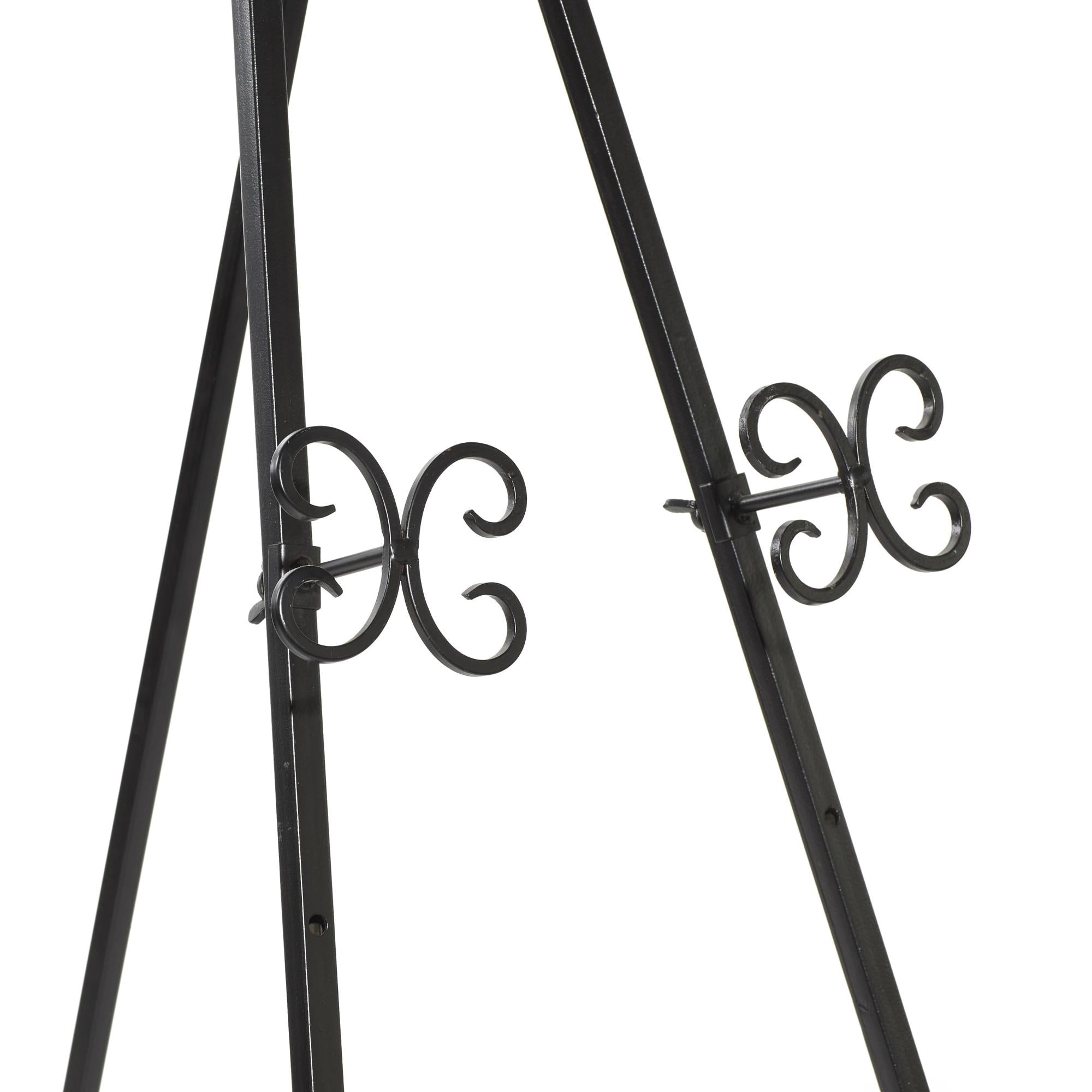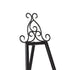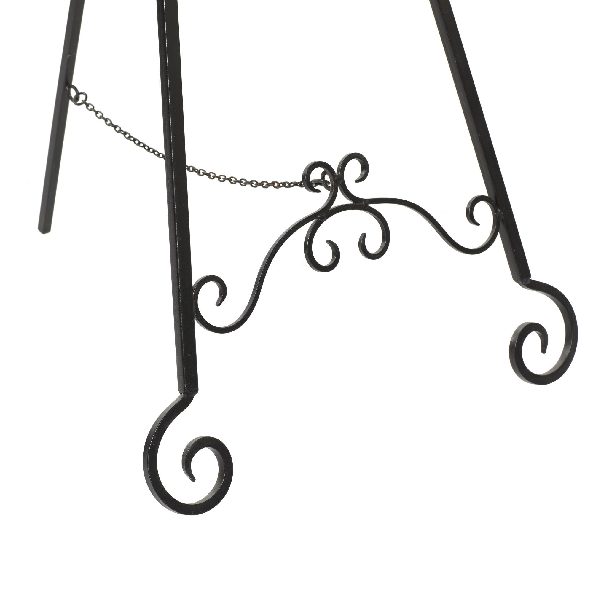 •This iron easel boasts a traditional design with elegant scrollwork details and three adjustable tiers for versatile display options