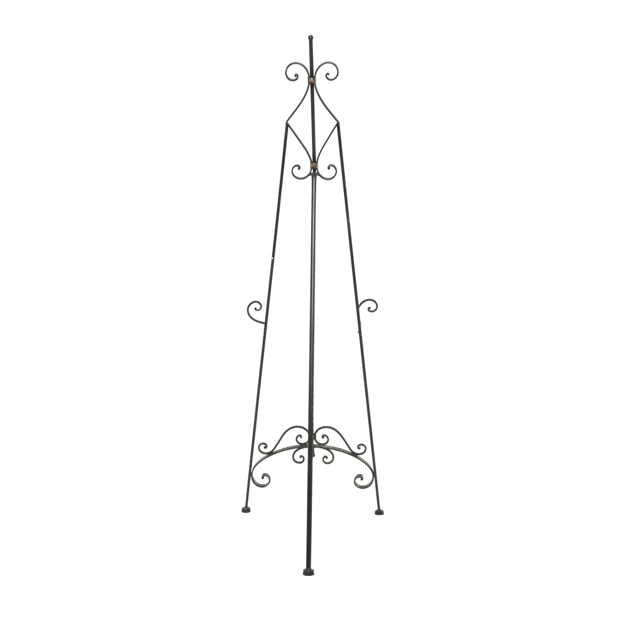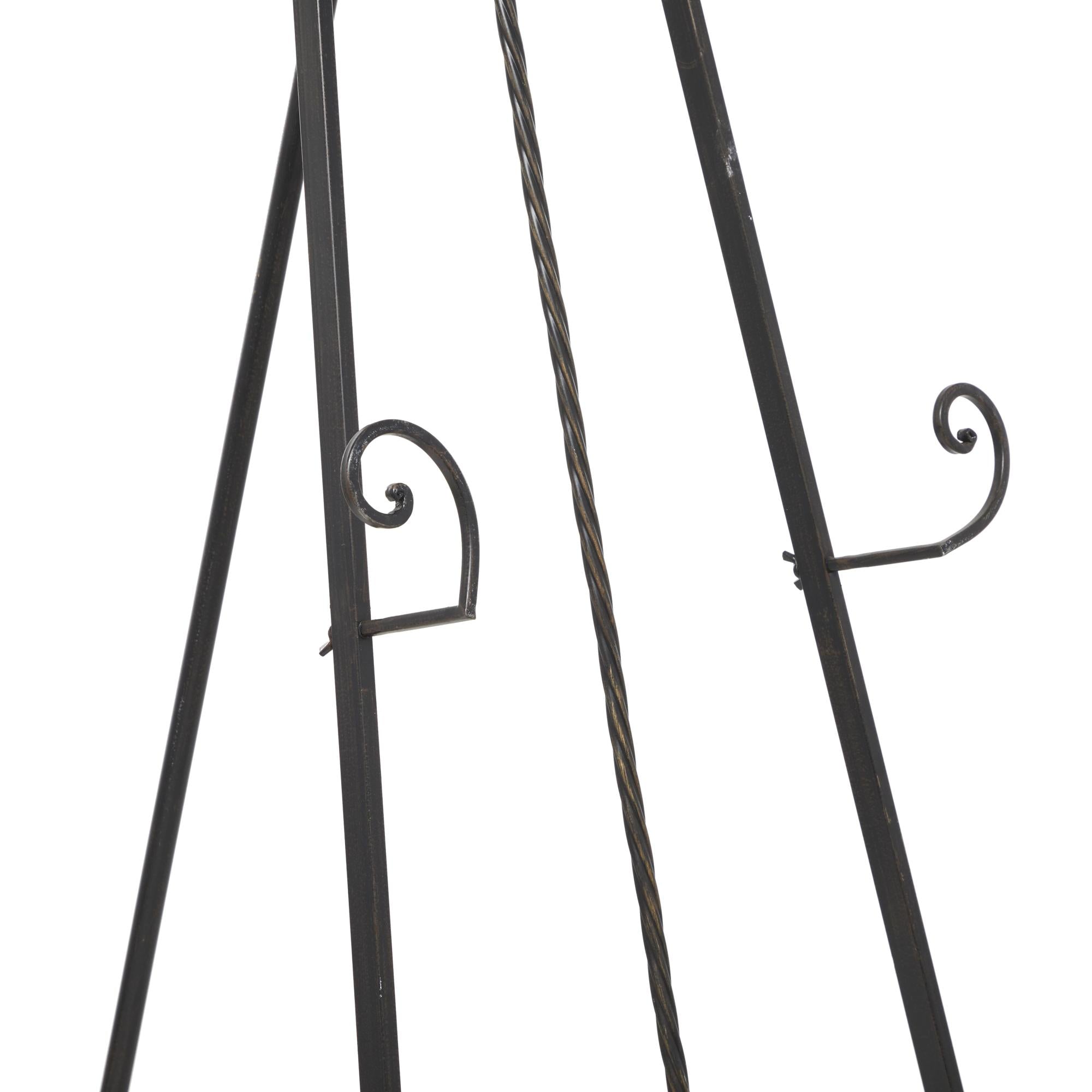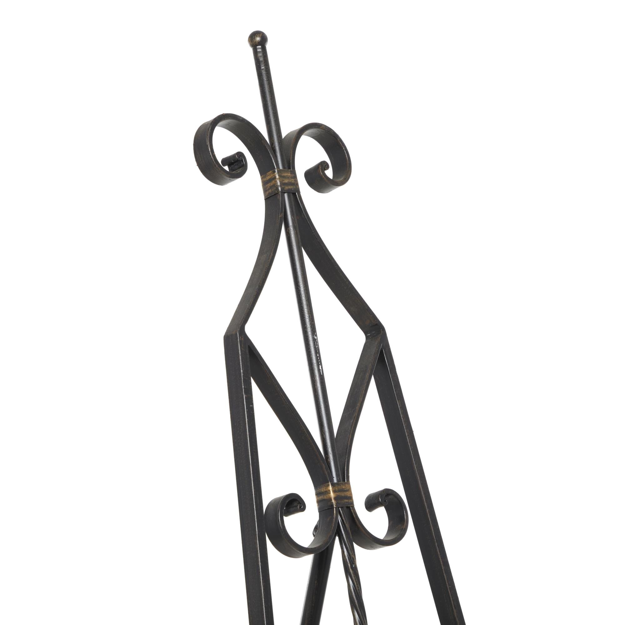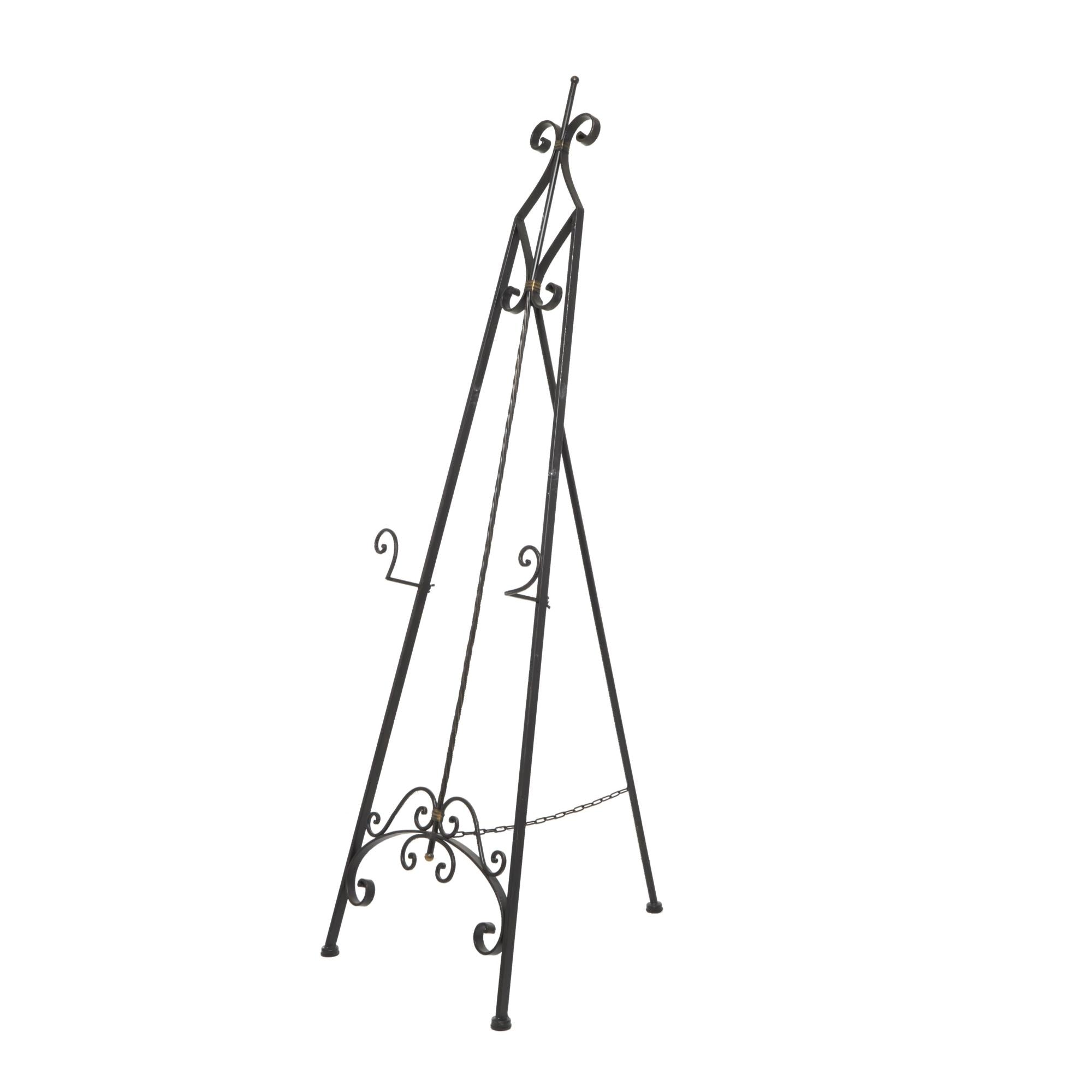 •This iron easel boasts a traditional design with elegant scrollwork details and accents, making it an eye-catching piece in any setting
