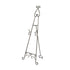 •The matte decorative easel boasts a tripod structure with intricate scrollwork at the top, base, and ends of the extended arms