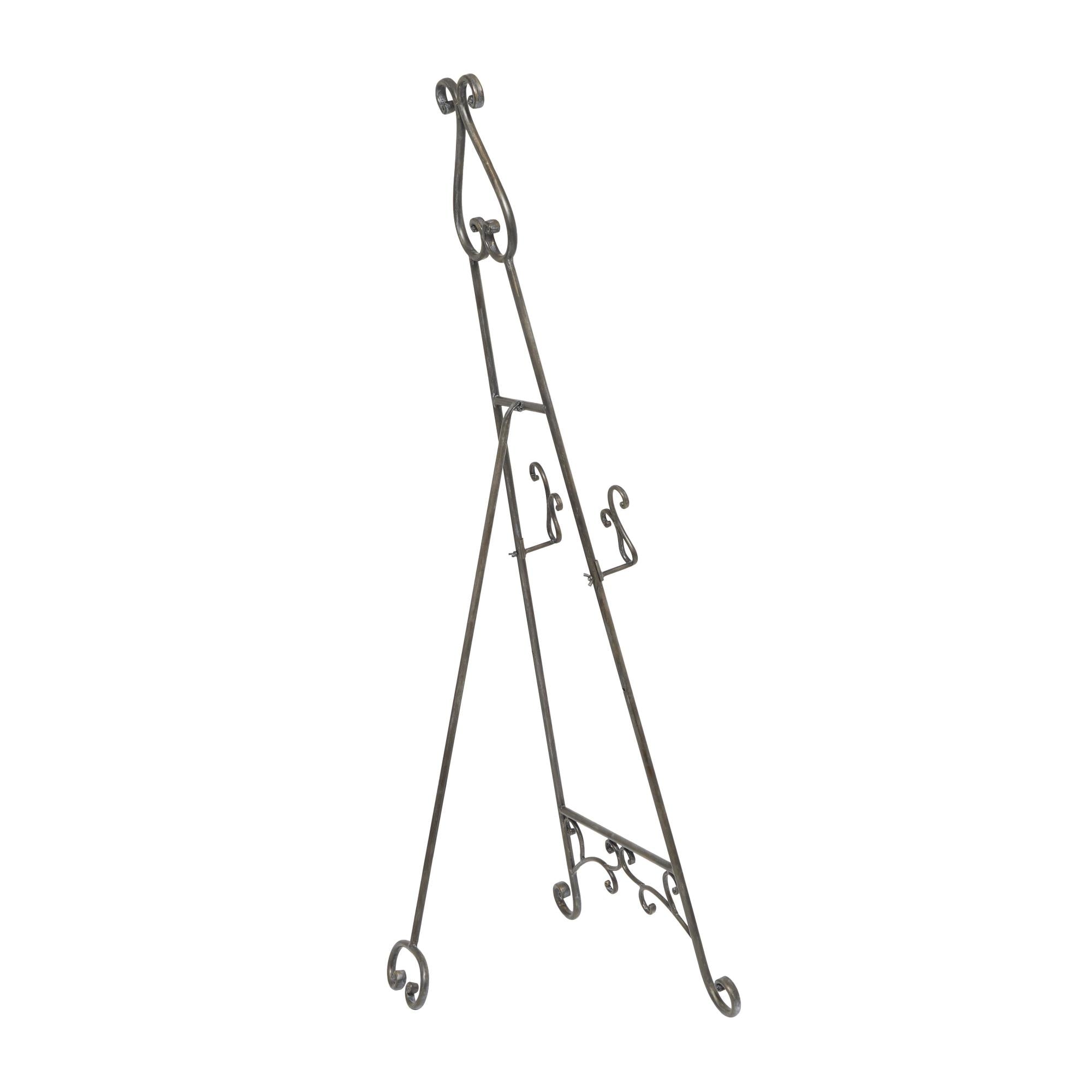 Give your surface space a finishing touch with these beautifully crafted easels. Durable and sturdy, this easel lets you display your favorite things with ease, and with out overshadowing your piece. Place the scroll floor standing easel in your living room or entryway to elegantly display framed art pieces that captivate guests. This item ships in 1 carton. Decorative floor easel features 2 adjustable levels to suit various sized items; however, items should not exceed the height of the easel when placed on it to prevent tipping and to ensure stability. This easel is designed to accommodate items with a maximum weight limit of 10 pounds, and a maximum height of 30 inches at the lowest level and between 16- 25 inches at the highest level. Suitable for indoor use only. This item ships fully assembled in one piece. Maximum weight limit is 10 lbs. This is a single floor standing easel. Traditional style.