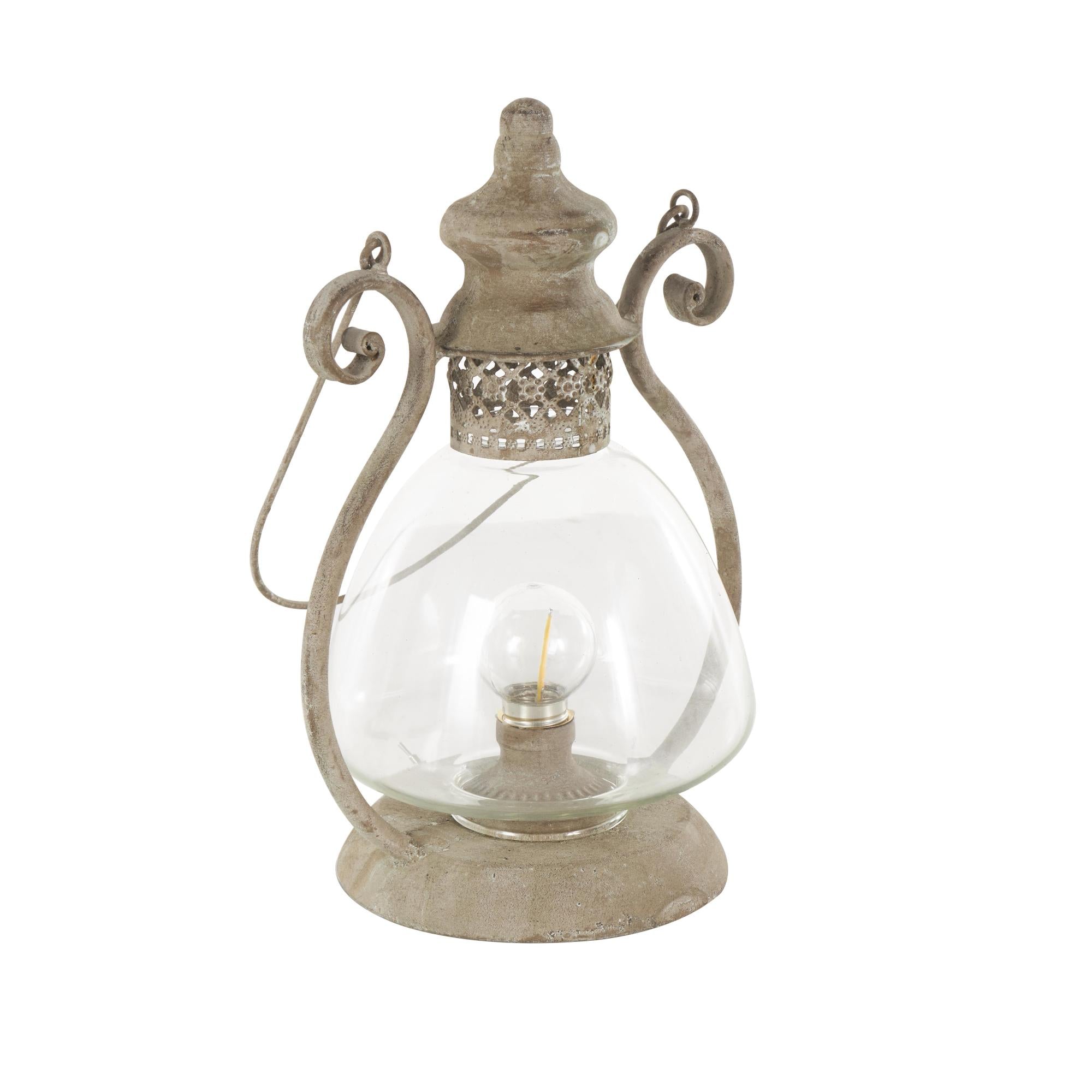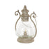 •The rustic candle holder lantern has been carefully welded with metal, applied with a sandstone finish, and furnished with a glass cover