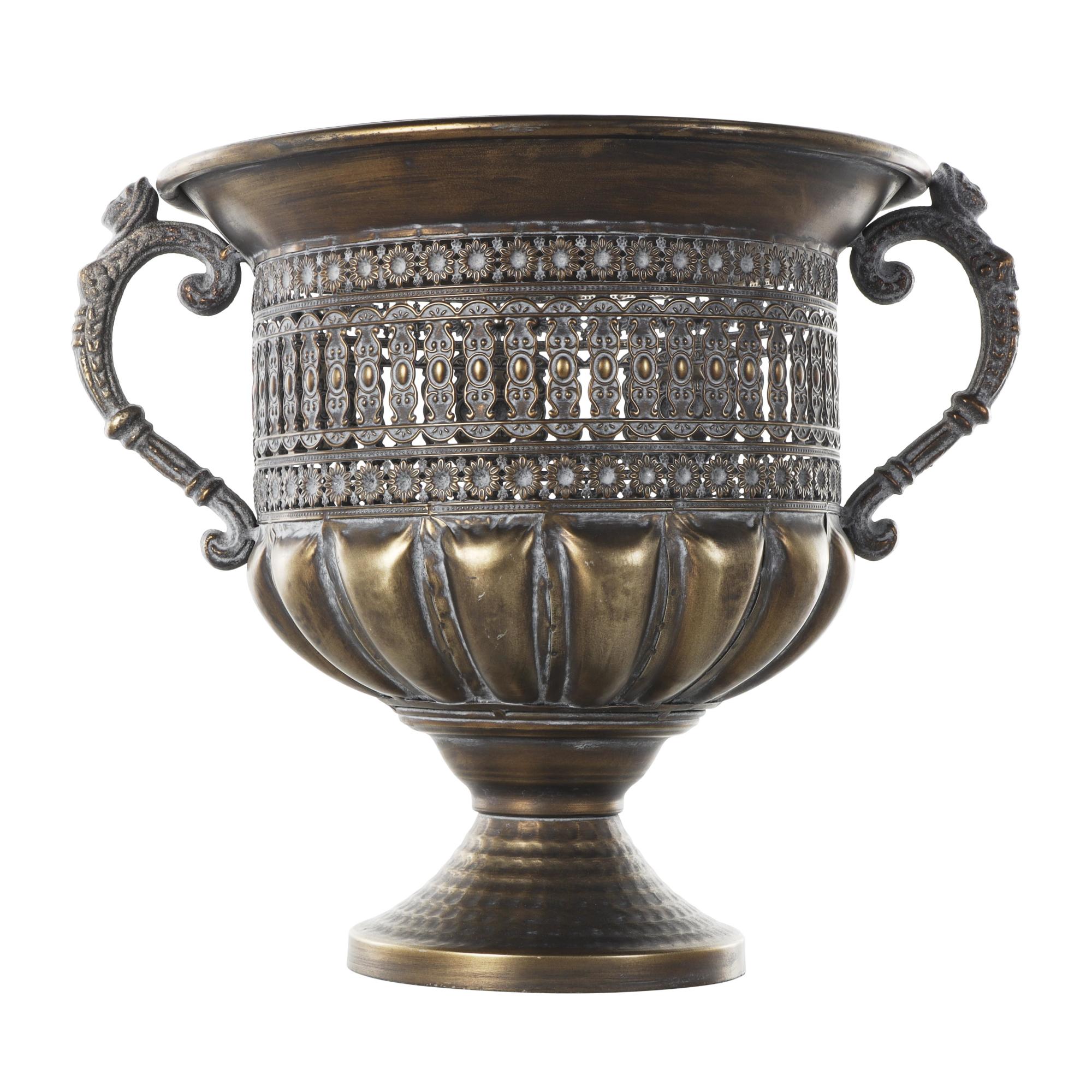 Scroll Bronze Metal Urn Shaped Decorative Vase with Cut Outs