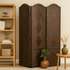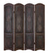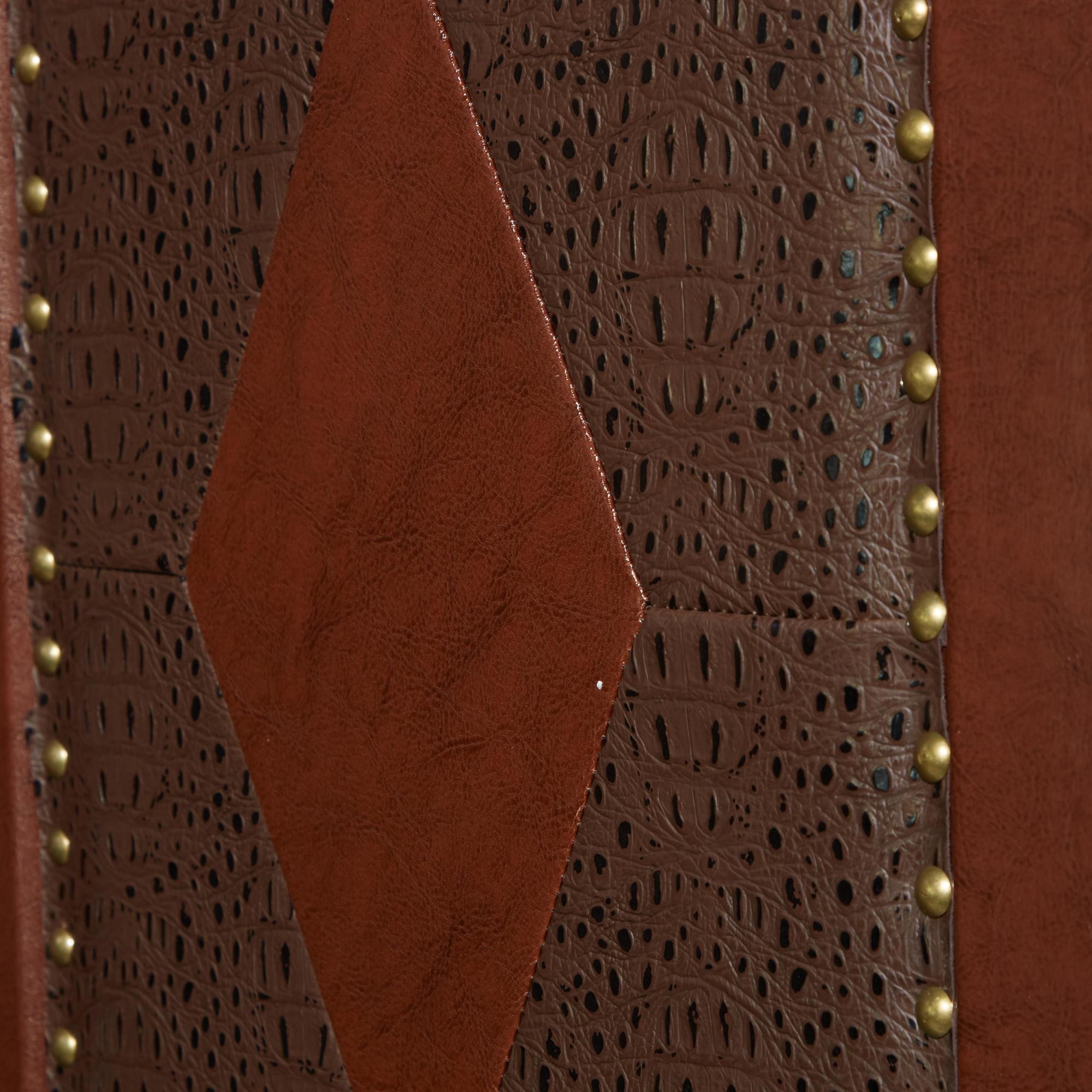 Scroll Brown Faux Leather Foldable Partition 4 Panel Partition Room Divider Screen with Faux Leather Detailing