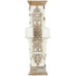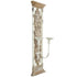 •The distressed decorative wall sconce showcases a rectangular wooden panel with carved flourishes and a tiered outer frame, complemented by round candle plates