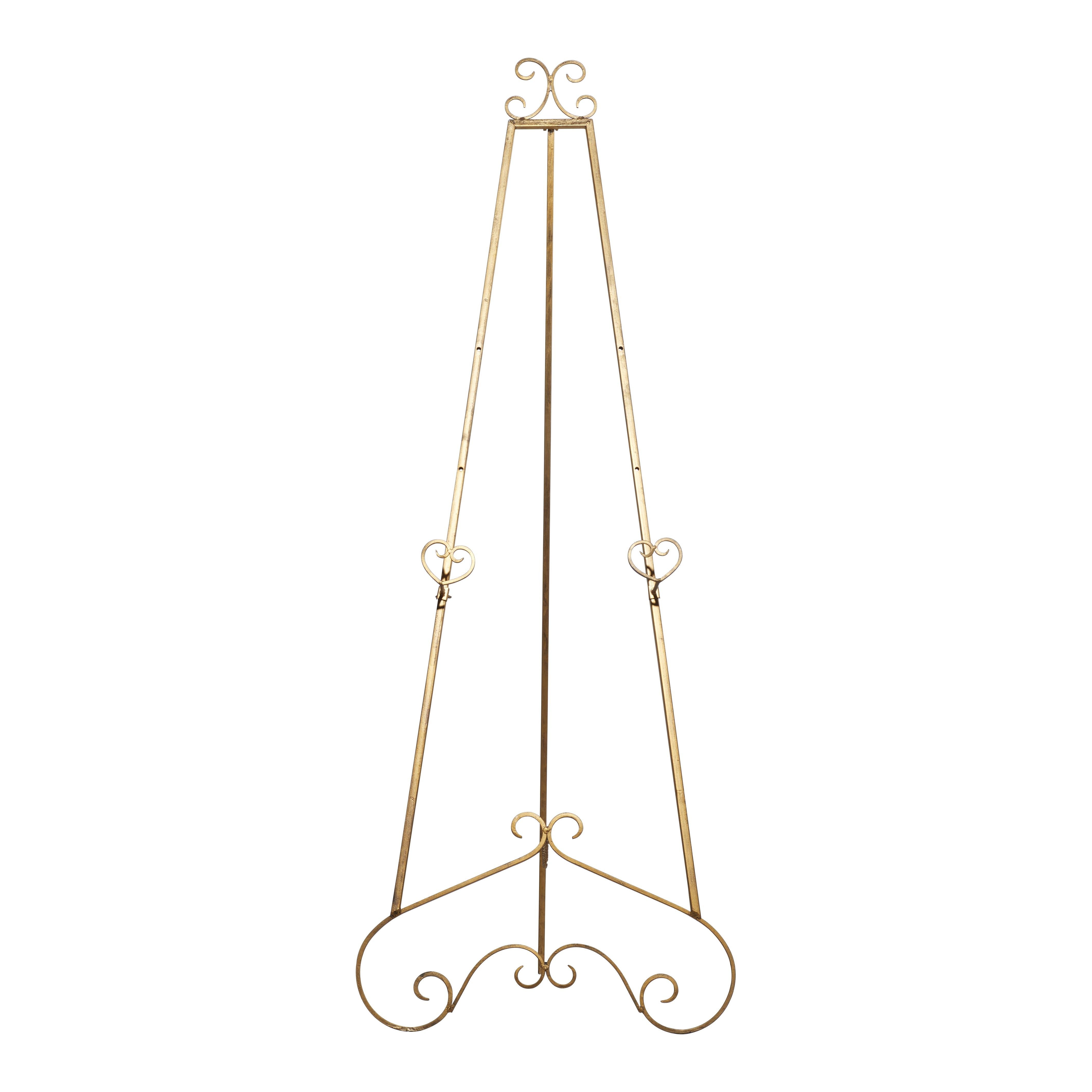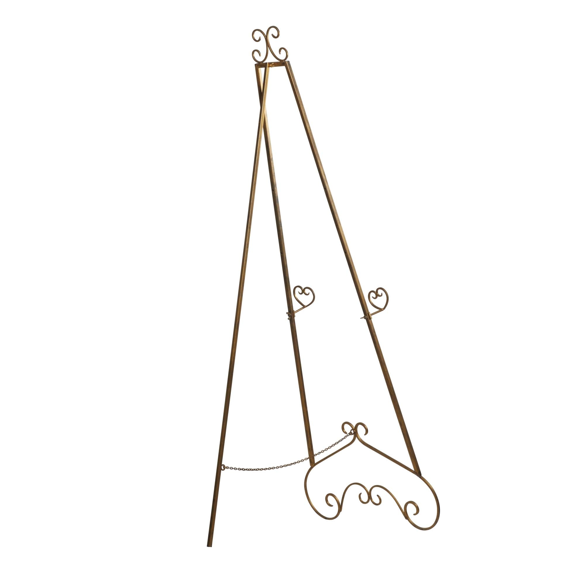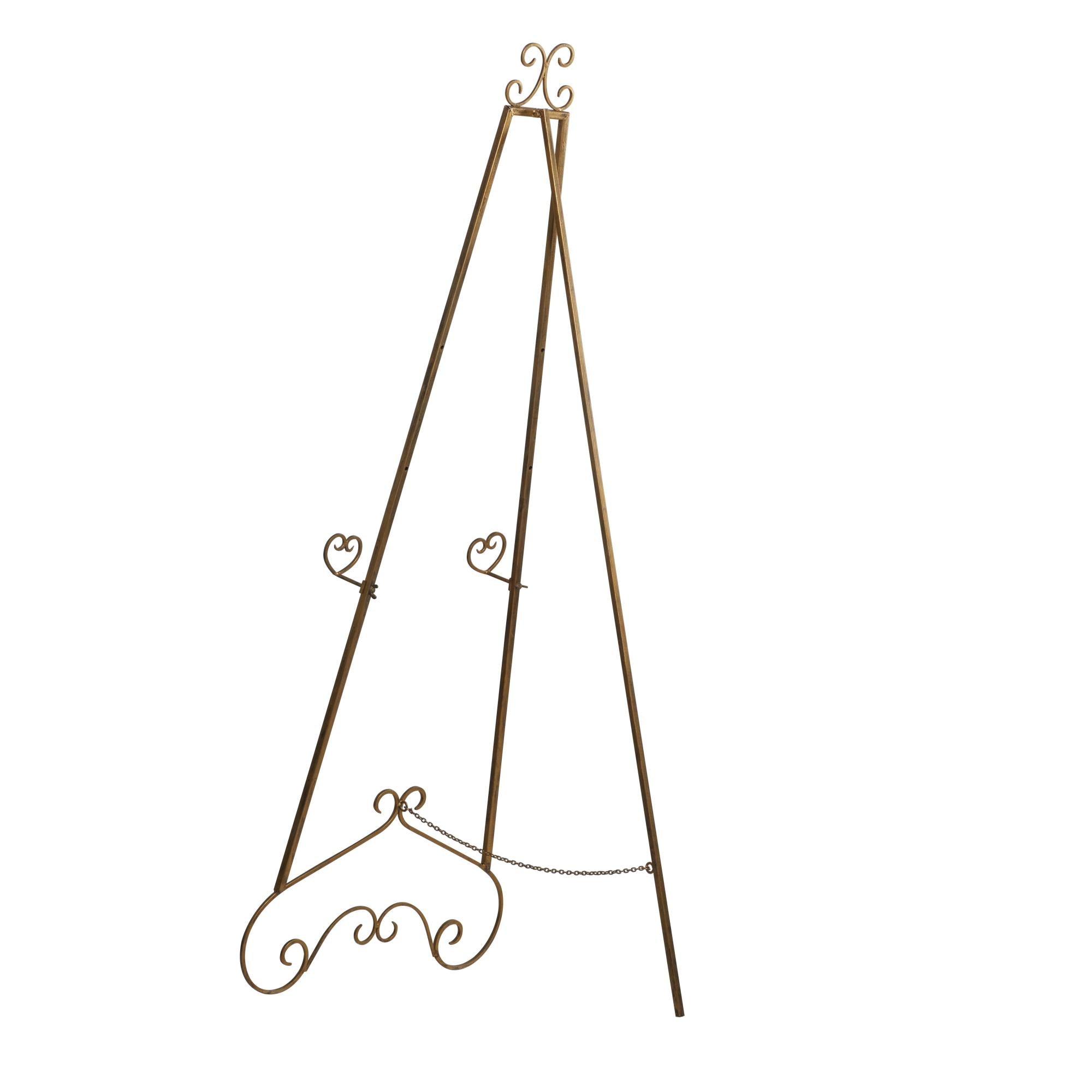 Put your show art and signs on display with this charming easel. Durable and sturdy, this easel lets you display your favorite things with ease, and with out overshadowing your piece. Place the scroll floor standing easel in your living room or entryway to elegantly display framed art pieces that captivate guests. This item ships in 1 carton. Decorative floor easel features 3 adjustable levels to suit various sized items; however, items should not exceed the height of the easel when placed on it to prevent tipping and to ensure stability. This easel is designed to accommodate items with a maximum weight limit of 10 pounds, and a maximum height of 40 inches at the lowest level and between 25- 34 inches at the highest level. Suitable for indoor use only. This item ships fully assembled in one piece. Maximum weight limit is 10 lbs. Made in India. This is a single floor standing easel. Traditional style.