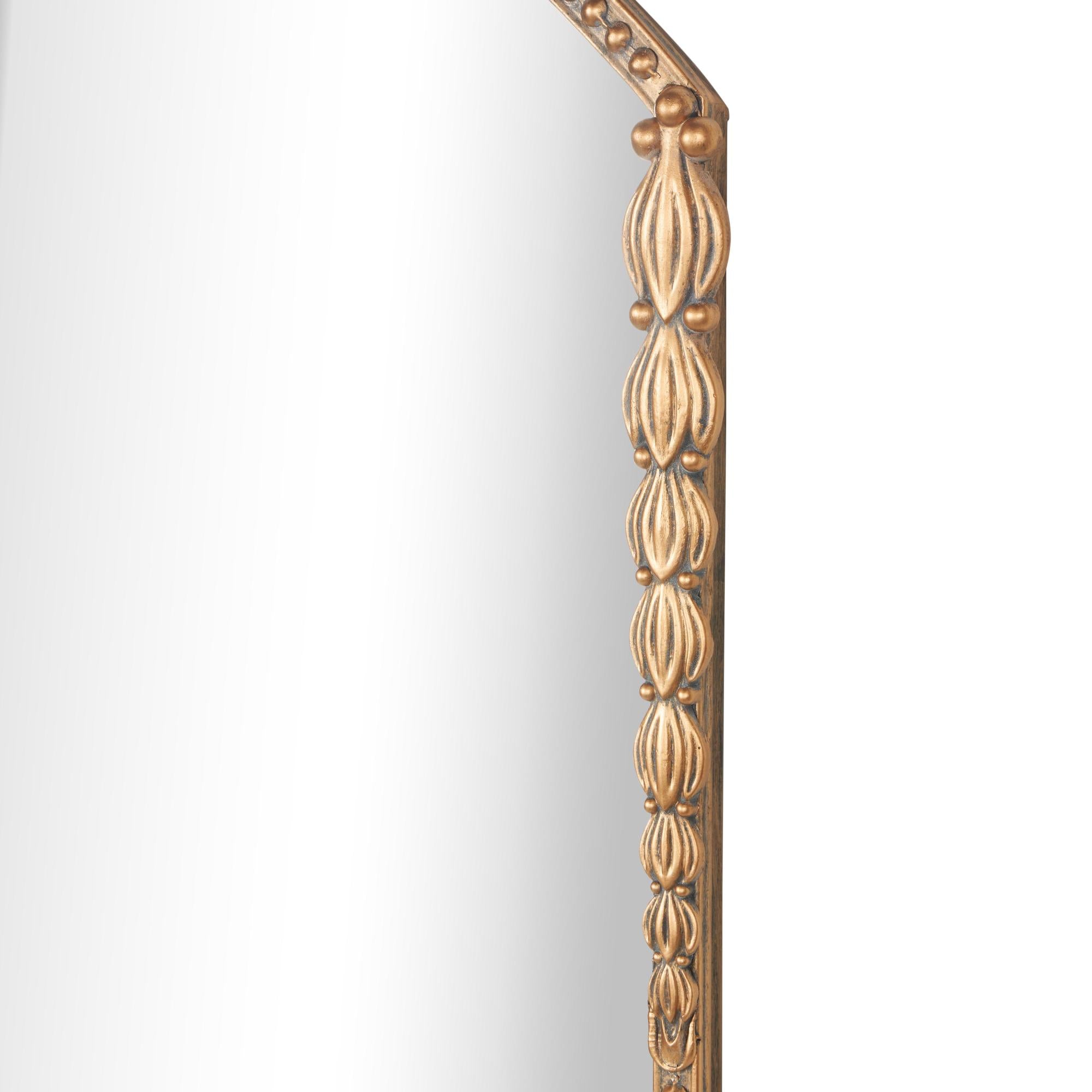 Scroll Gold Metal Ornate Antique Arch Room Wall Mirror with Beaded Frame
