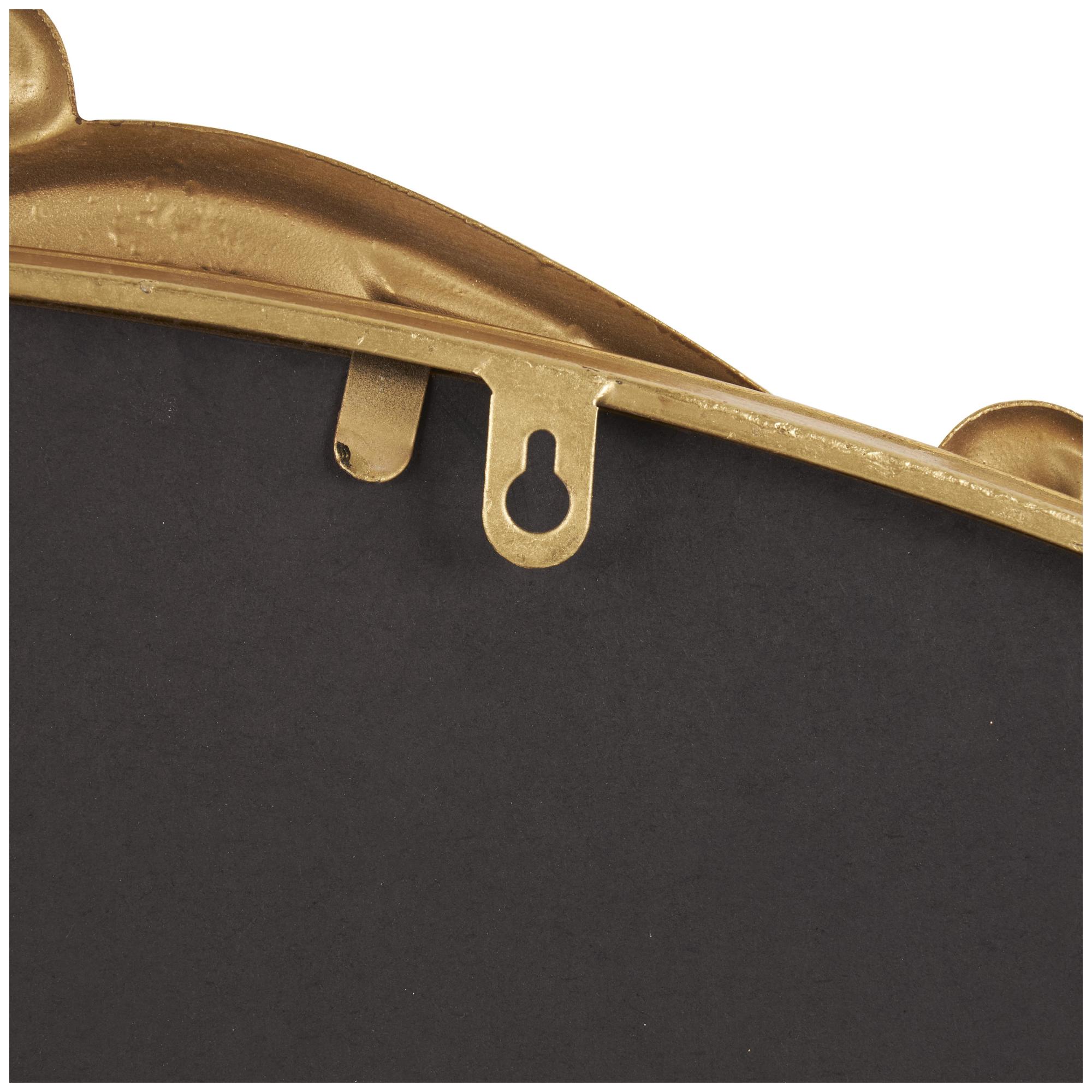 Place this golden ornate floor mirror in a sunlit parlor or at the end of an elegant corridor, its radiant reflections and intricate detailing will create an enchanting focal point. This item ships in 1 carton. Actual mirror dimensions are 23"wide by 44" high. Can be hung vertically using the keyholes; nails and screws not included. Suitable for indoor use only. This item ships fully assembled in one piece. Made in India. This is a single free standing mirror. Vintage style.
