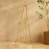 •The matte decorative easel features a triangular structure with intricate scrollwork patterns, adding an ornate touch to any setting