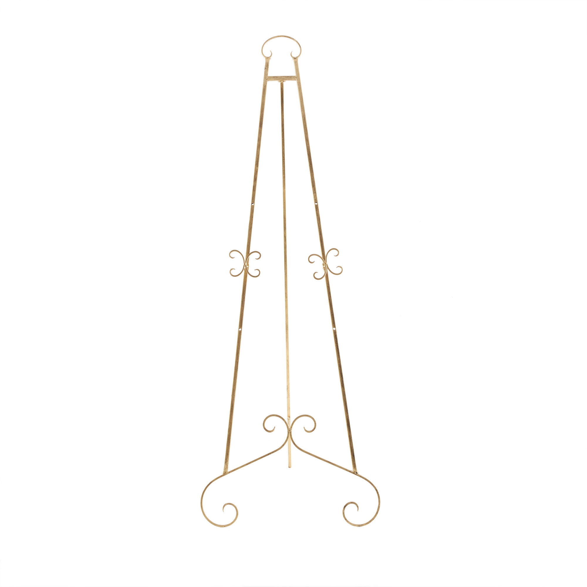 Place the scroll floor standing easel in your living room or entryway to elegantly display framed art pieces that captivate guests. This item ships in 1 carton. Decorative floor easel features 3 adjustable levels to suit various sized items; however, items should not exceed the height of the easel when placed on it to prevent tipping and to ensure stability. This easel is designed to accommodate items with a maximum weight limit of 10 pounds, and a maximum height of 40 inches at the lowest level and between 25- 34 inches at the highest level. Suitable for indoor use only. This item ships fully assembled in one piece. Maximum weight limit is 10 lbs. Made in India. This is a single floor standing easel. Traditional style.