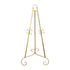 •The matte decorative easel features a triangular structure with intricate scrollwork patterns, adding an ornate touch to any setting