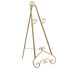 •The satin decorative easel features a triangular structure with intricate scrollwork patterns, adding an ornate touch to any setting