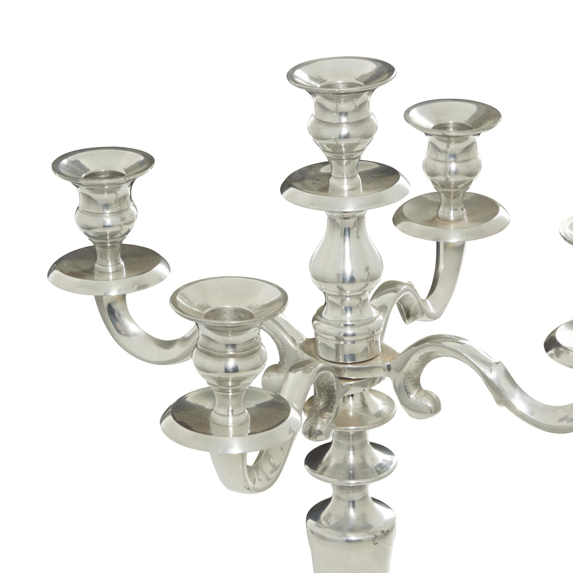 •This traditional decorative candleholder is forged from aluminum to form an elegant pillar and base with five holders applied with a polished finish