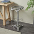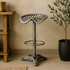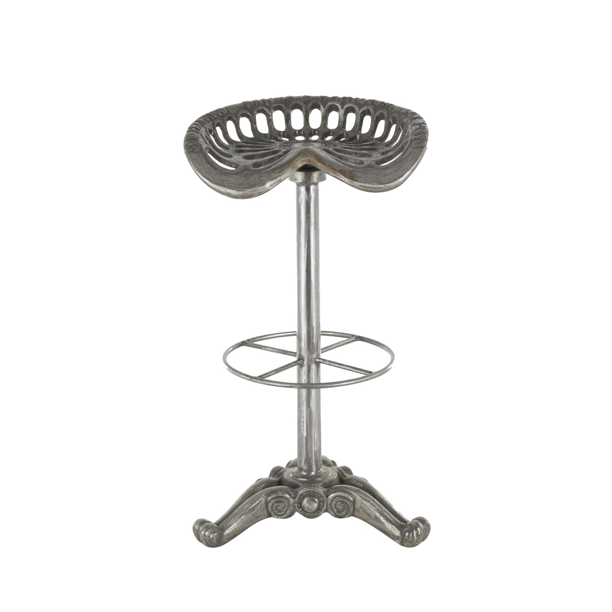 Scroll Gray Metal Weathered Antique Cast Iron Kitchen Bar Stool with Cutout Textured Seat and Footrest
