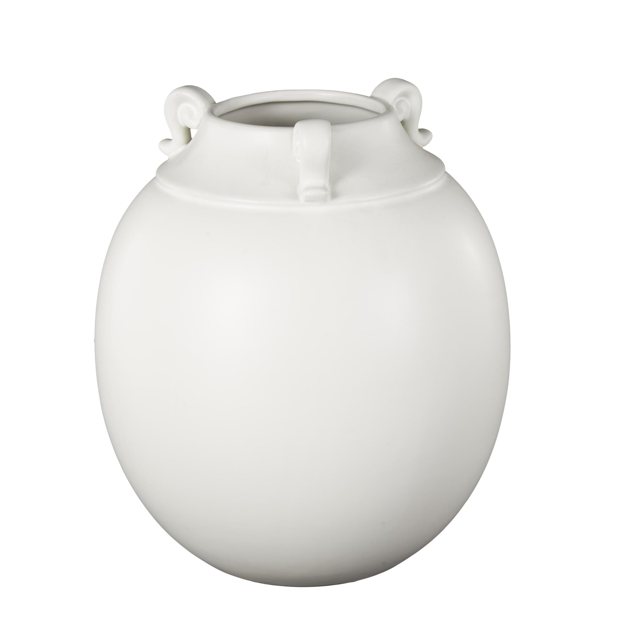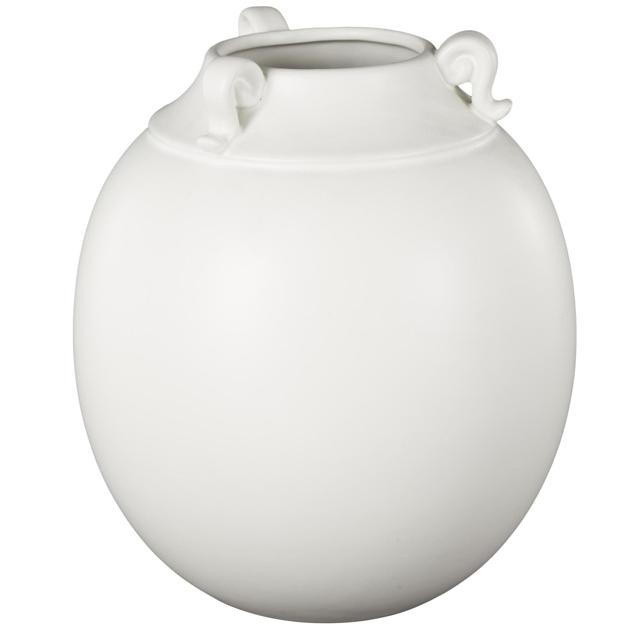 Scroll White Ceramic Decorative Vase with Handles