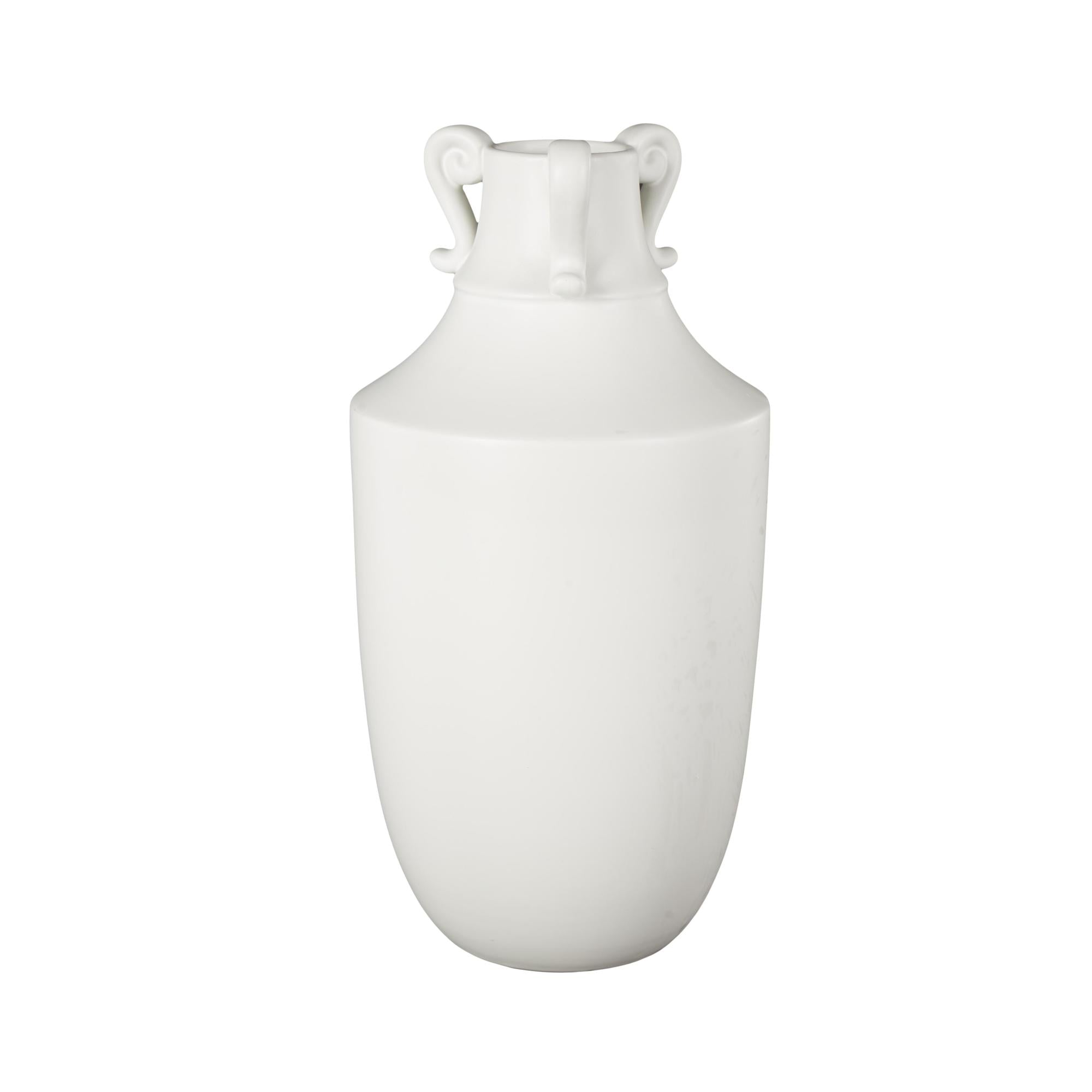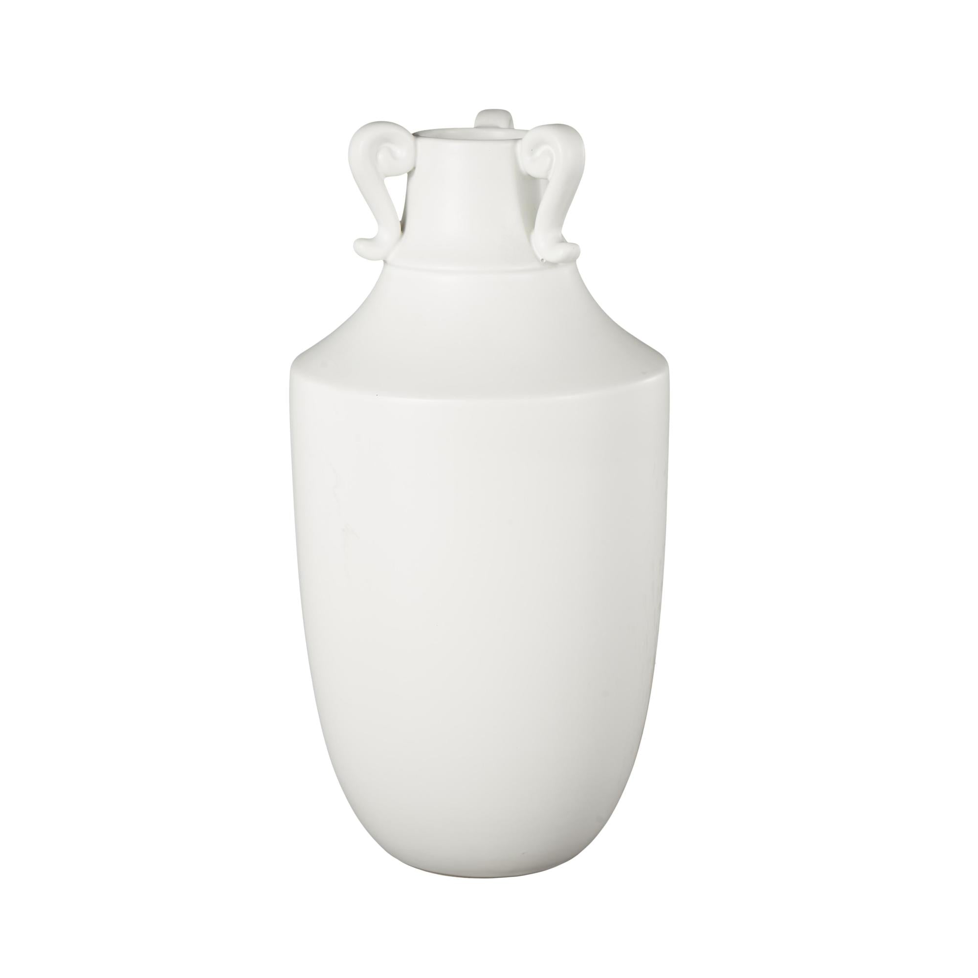 Scroll White Ceramic Sleek Amphora Decorative Vase with Handles