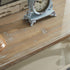 •The matte home table showcases a rectangular surface, and shelves complemented by curved side wood frames with scroll patterns