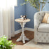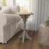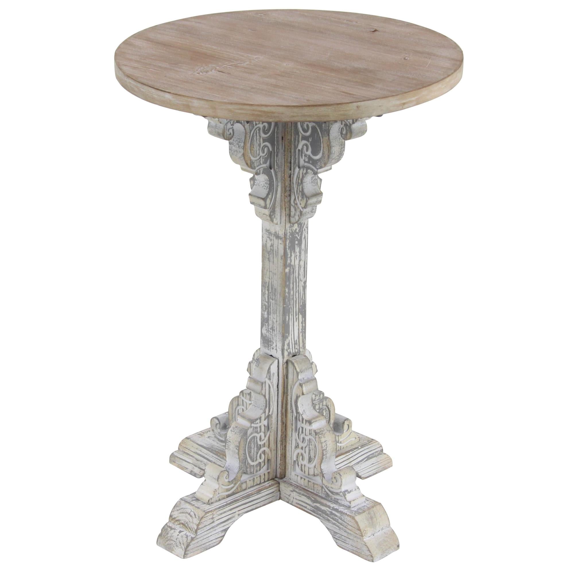 Scroll Wood Distressed Pedestal Side End Accent Table with Brown Wood Top 16" x 16" x 23"