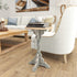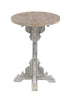 •The distressed living room table features a striking round wooden tabletop and pedestal base, adding to its overall aesthetic appeal