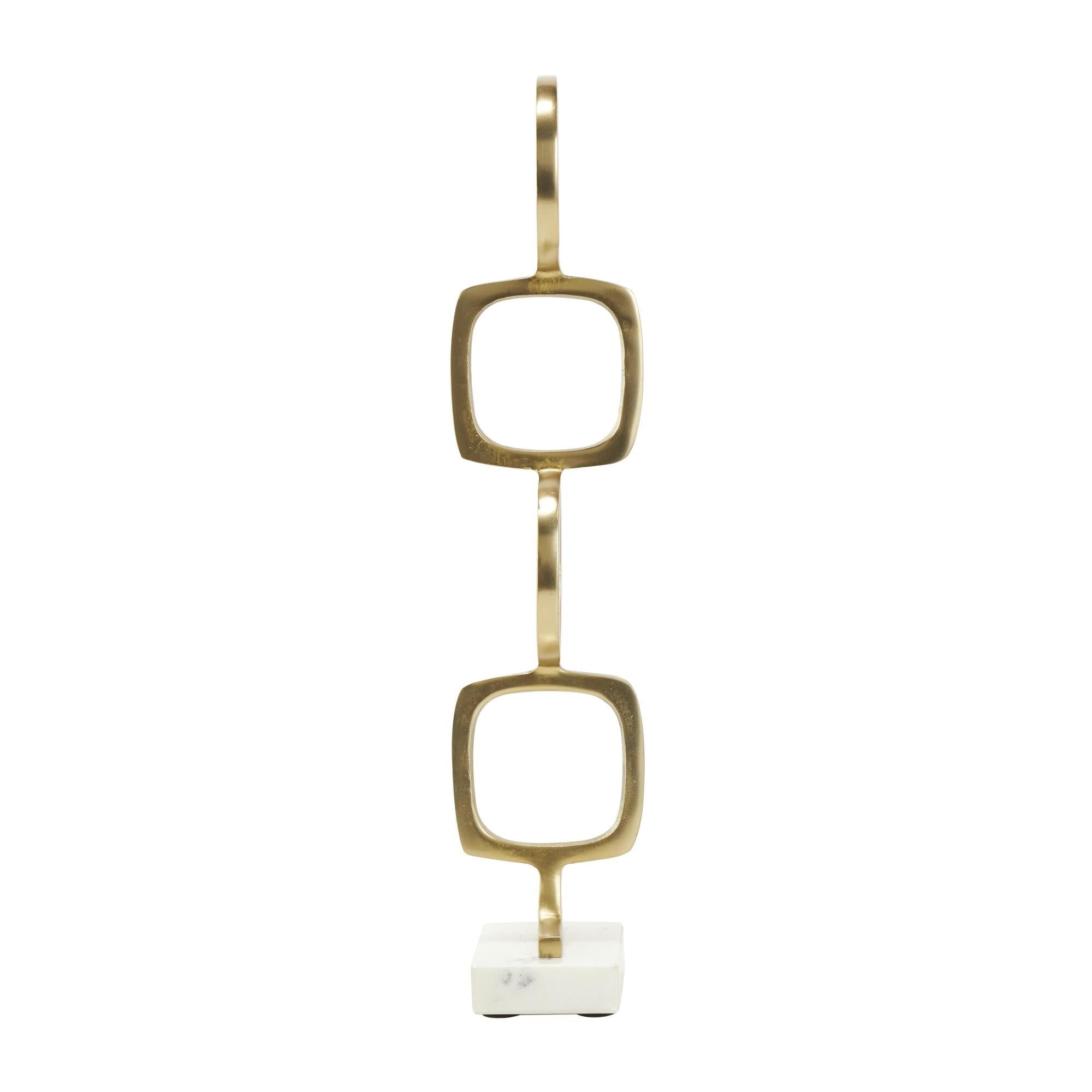Style this abstract set of 2 home decor statues as standalone pieces on a console table or pair them together for a unique display in living rooms, bedrooms, or offices. Designed with felt or rubber stoppers at the base that prevent scratching furniture and table tops, as well as sliding around. This item ships in 1 carton. Please note that this item is for decorative use only. Aluminum sculpture makes a great gift for any occasion. Suitable for indoor use only. This item ships fully assembled in one piece. Marble is a product of nature and no two pieces are exactly alike. It is prone to variations in color and/or patterns in the material that add to the beauty and charm of the piece.. Made in India. This aluminum statue comes as a set of 2. Contemporary style.