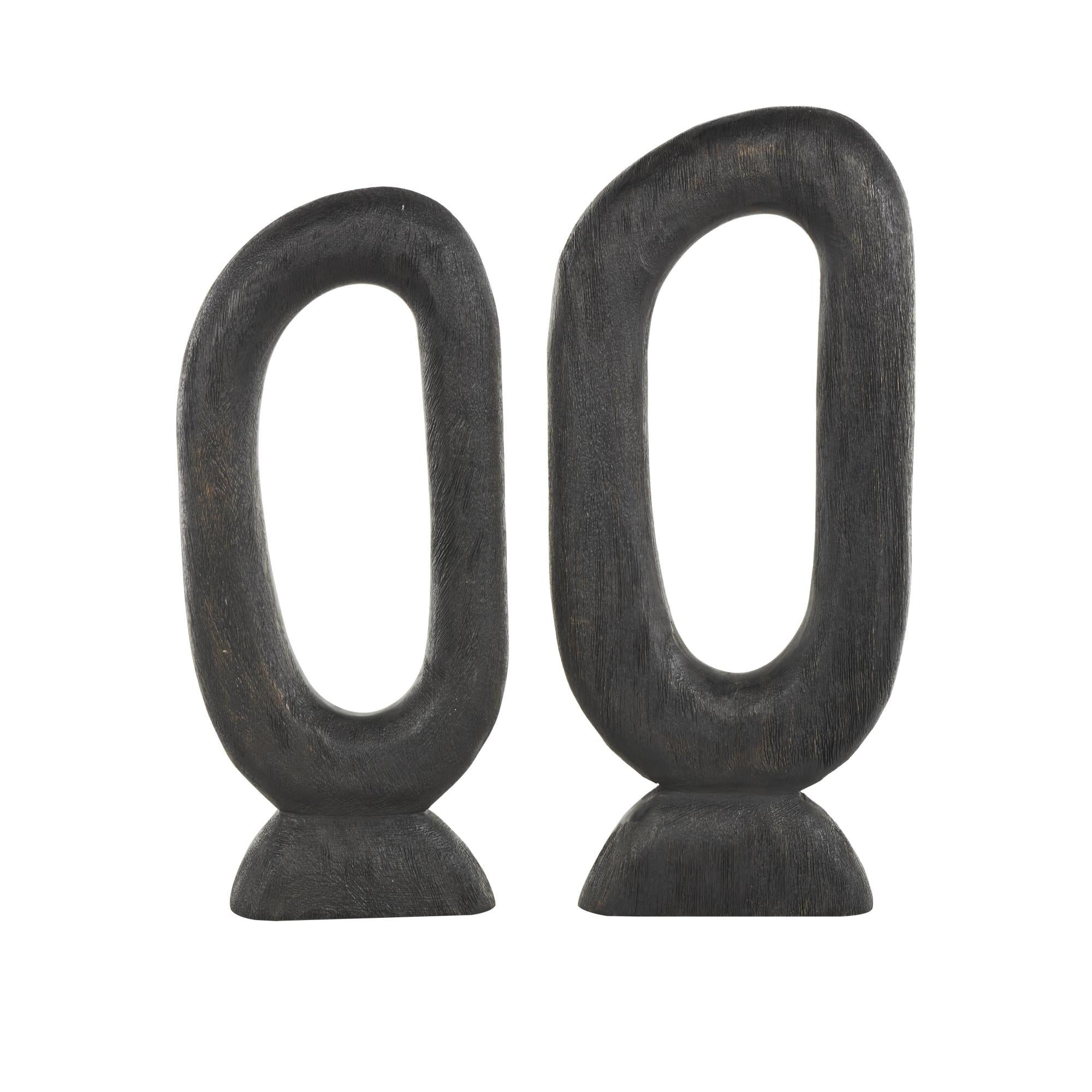 Set of 2 Abstract Black Mango Wood Cutout Oval Decorative Sculpture