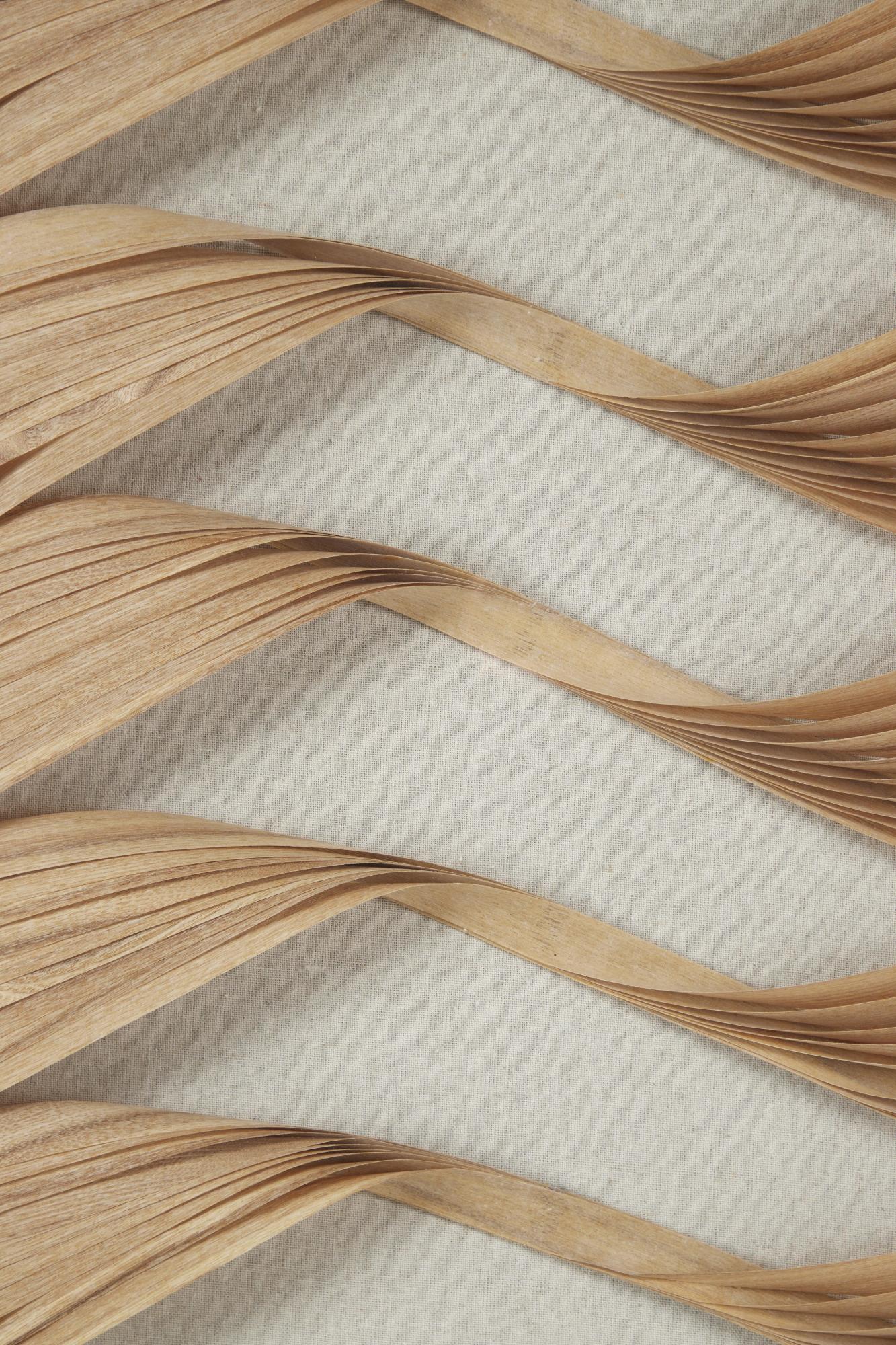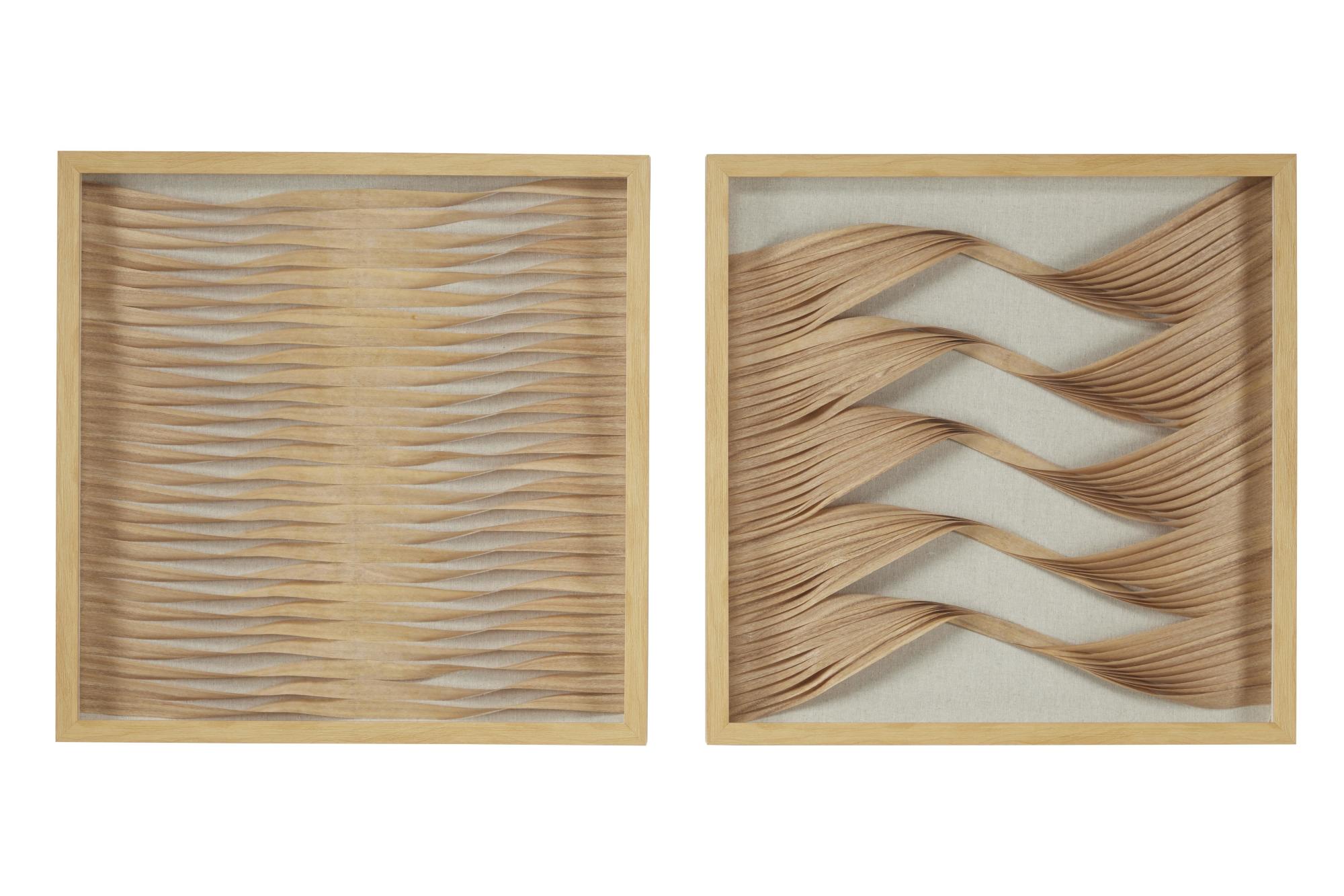 Set of 2 Abstract Brown Wooden Handmade Twisted Ribbon Home Shadow Box with Beige Linen Backing