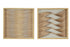 •Wood set of 2 shadow boxes showcases wood-like tan ribbons meticulously placed on canvas fabric backs within plastic frames that mimic wood textures