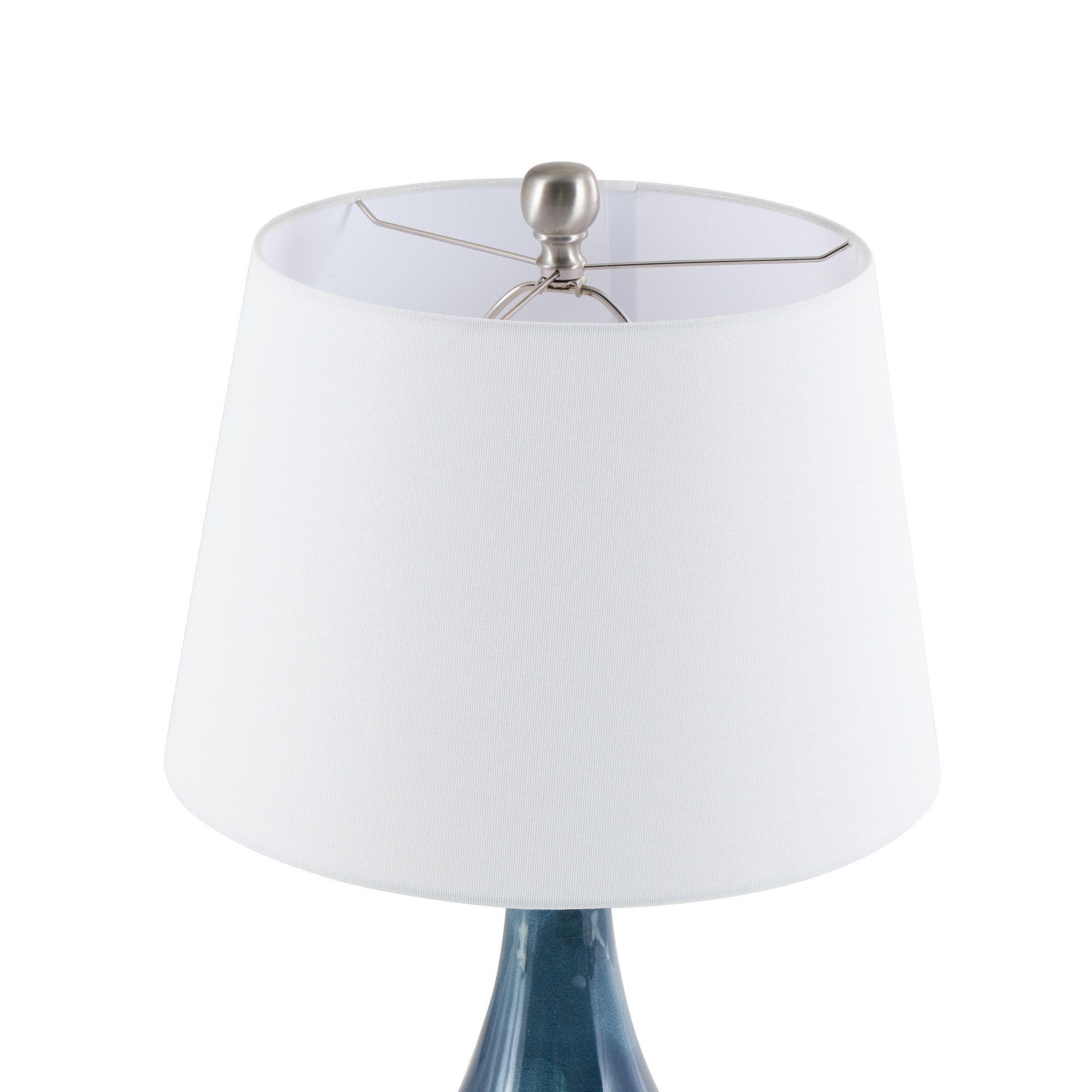 Due to the unique glaze, no two lamps will look alike. There will be differences in color and brightness. Ideal for adding color to coastal-style dens or offices, this set of 2 accent lamps are versatile and stylish. Designed with felt or rubber stoppers at the base that prevent scratching furniture and table tops, as well as sliding around. Requires 1 150W Type A E26/Medium (Standard) bulb. This item ships in 1 carton. Comes with a 61" cord length. Suitable for indoor use only. This item ships fully assembled in one piece. Table lamp comes with a drum shaped shade that measures 16 x 16 x 12 inches. Includes a on/off switch. This ceramic accent lamp comes as a set of 2. Coastal style.