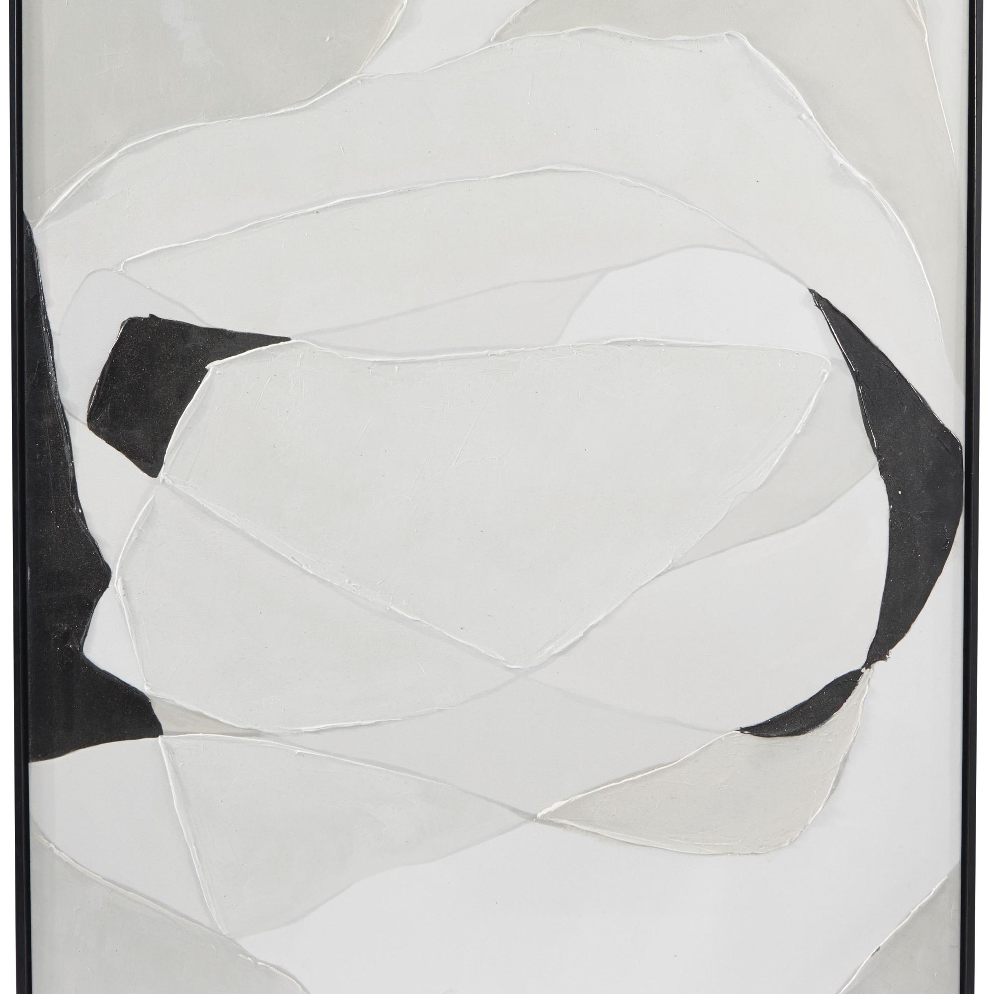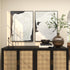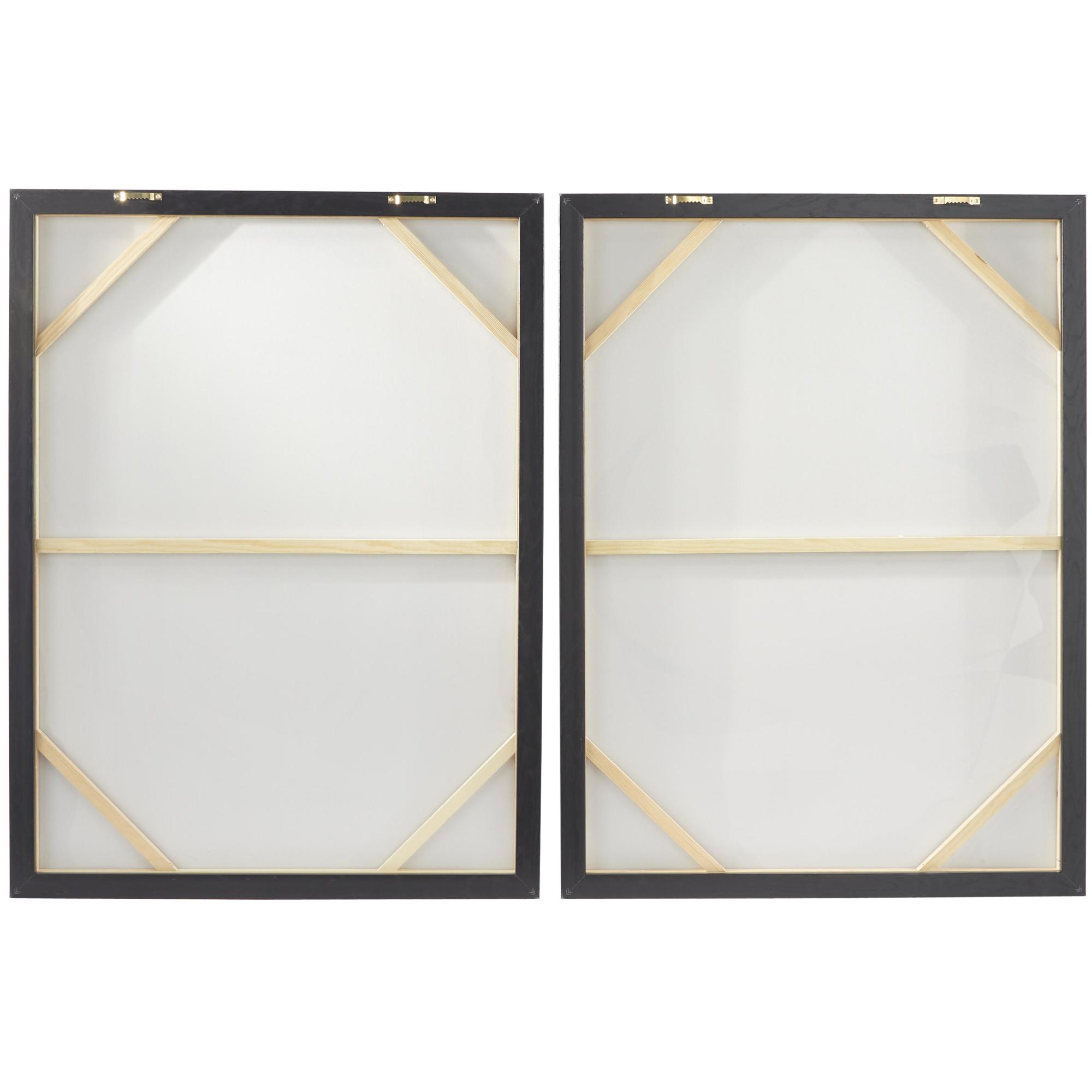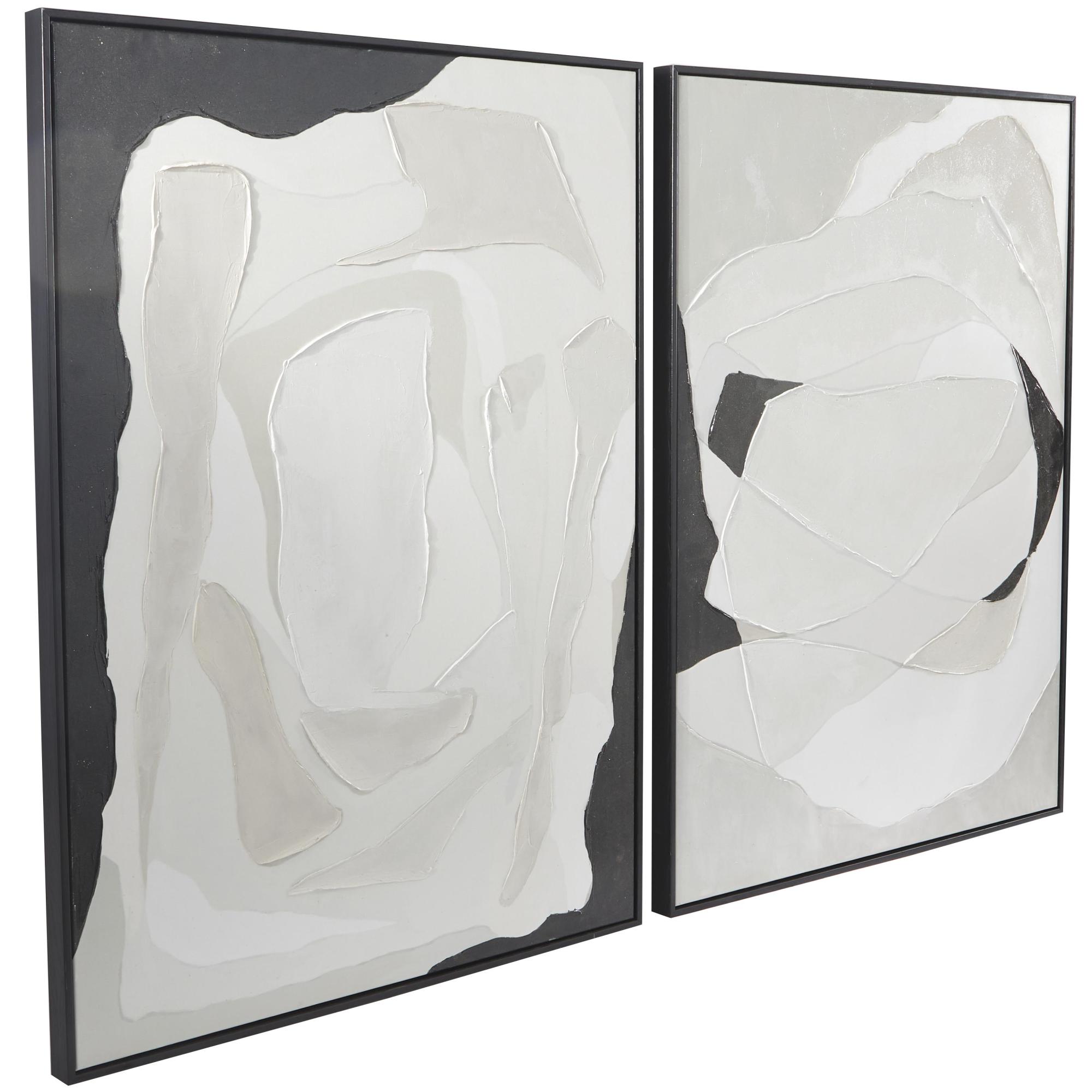 •This contemporary set of 2 framed canvas art is crafted with the canvas carefully stretched over a sturdy polystone frame and carved wood backing