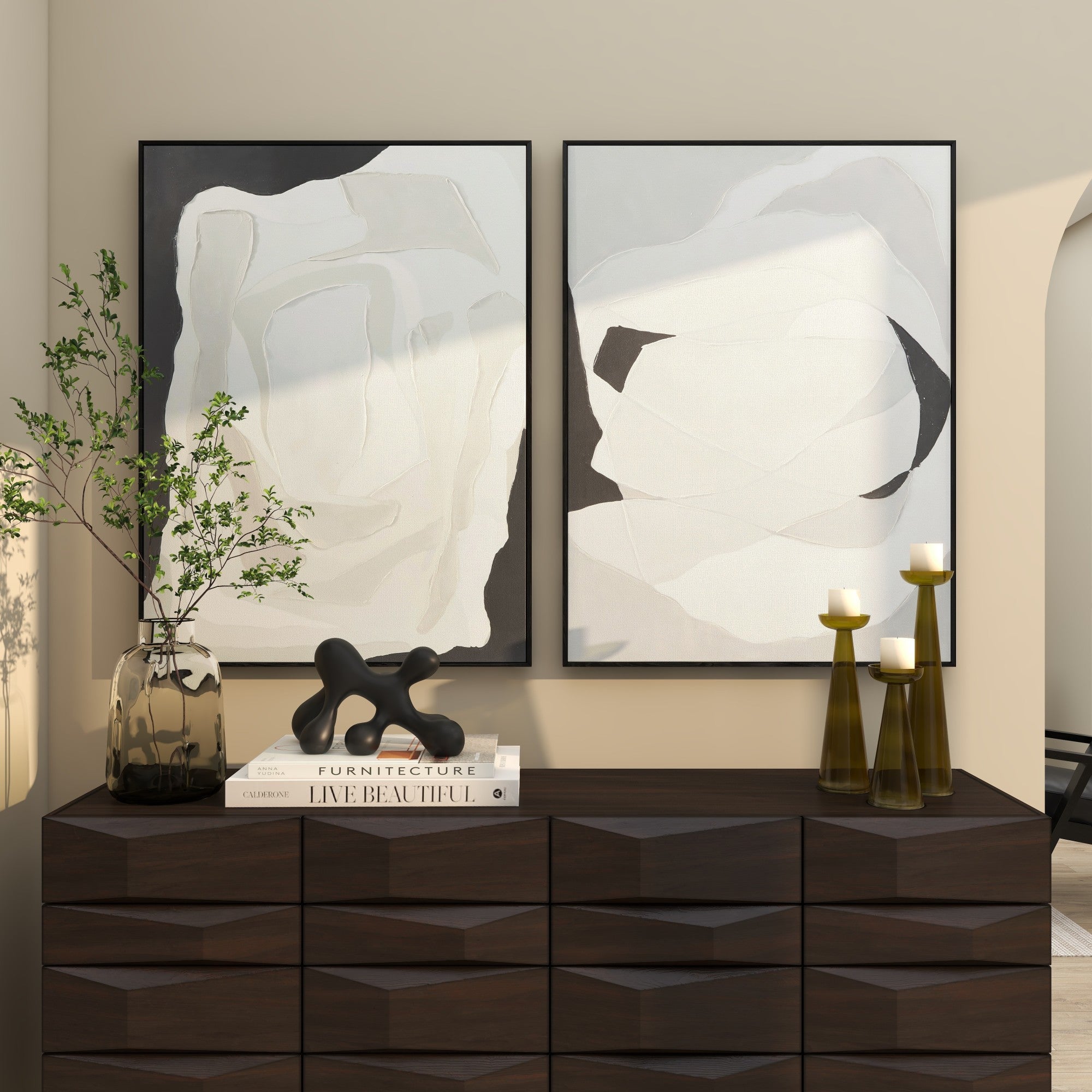 Set of 2 Abstract White Canvas Living Room Framed Wall Art with Black Frame