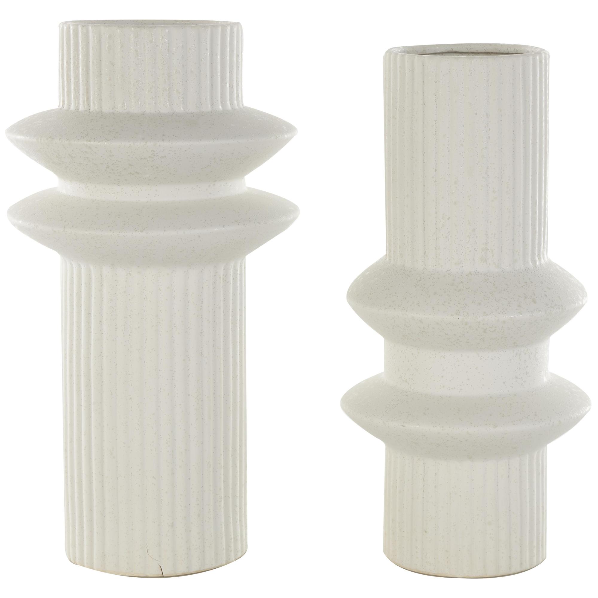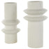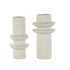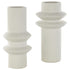 Set of 2 Abstract White Ceramic Ribbed Decorative Vase with Speckled Texturing