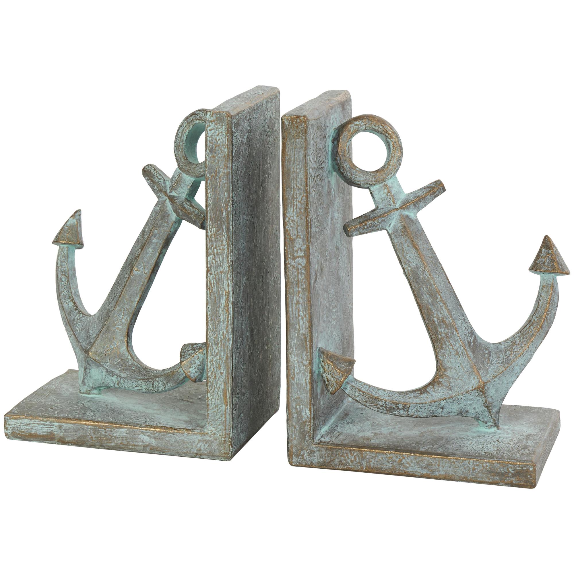 Place this anchor set of 2 non-skid bookends on your bookshelf or desk to keep your books organized while infusing your space with maritime character. Designed with felt or rubber stoppers at the base that prevent scratching furniture and table tops, as well as sliding around. This item ships in 1 carton. Polyresin bookends make a great gift for any occasion. Suitable for indoor use only. This item ships fully assembled in one piece. This polyresin non skid bookends comes as a set of 2. Nautical style.