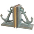 Set of 2 Anchor Blue Polyresin Distressed Patina Decorative Bookends with Gold Foil Accents