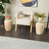 Set of 2 Beige Magnesium Oxide Side End Accent Table with Tempered Glass Tabletop