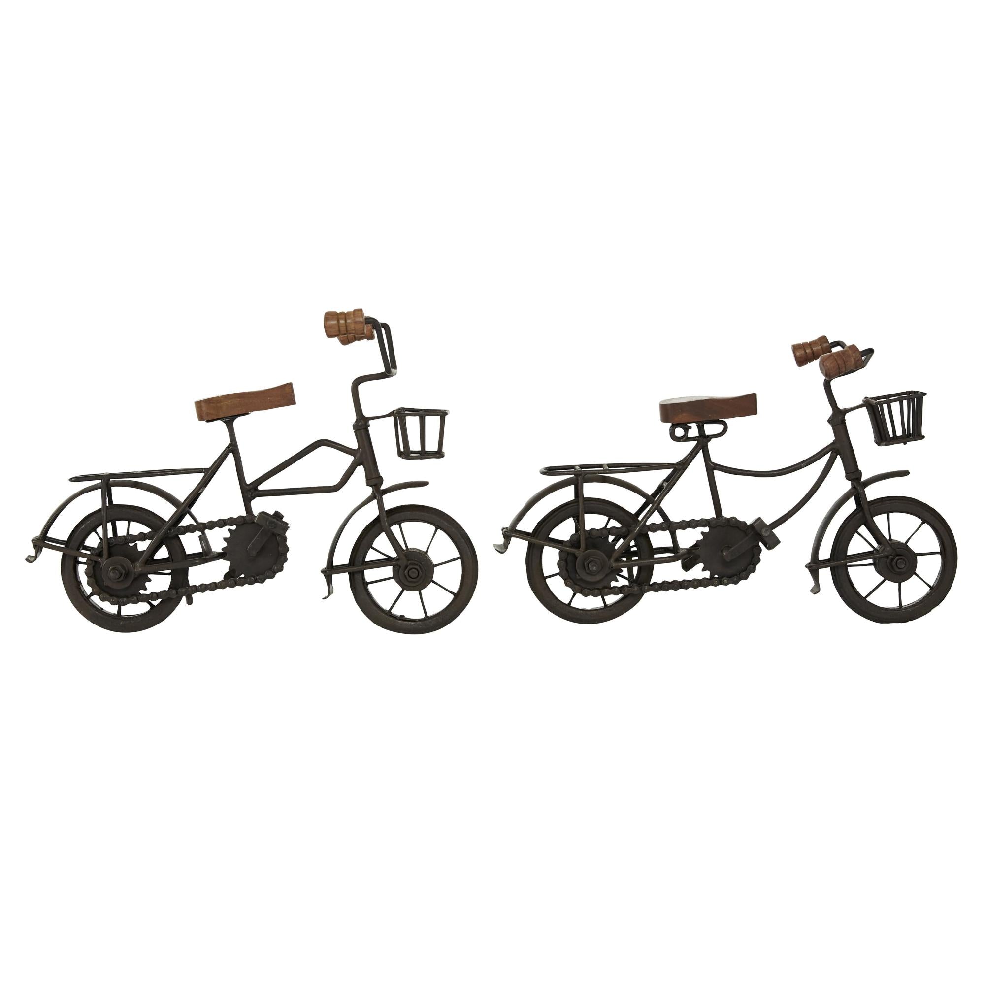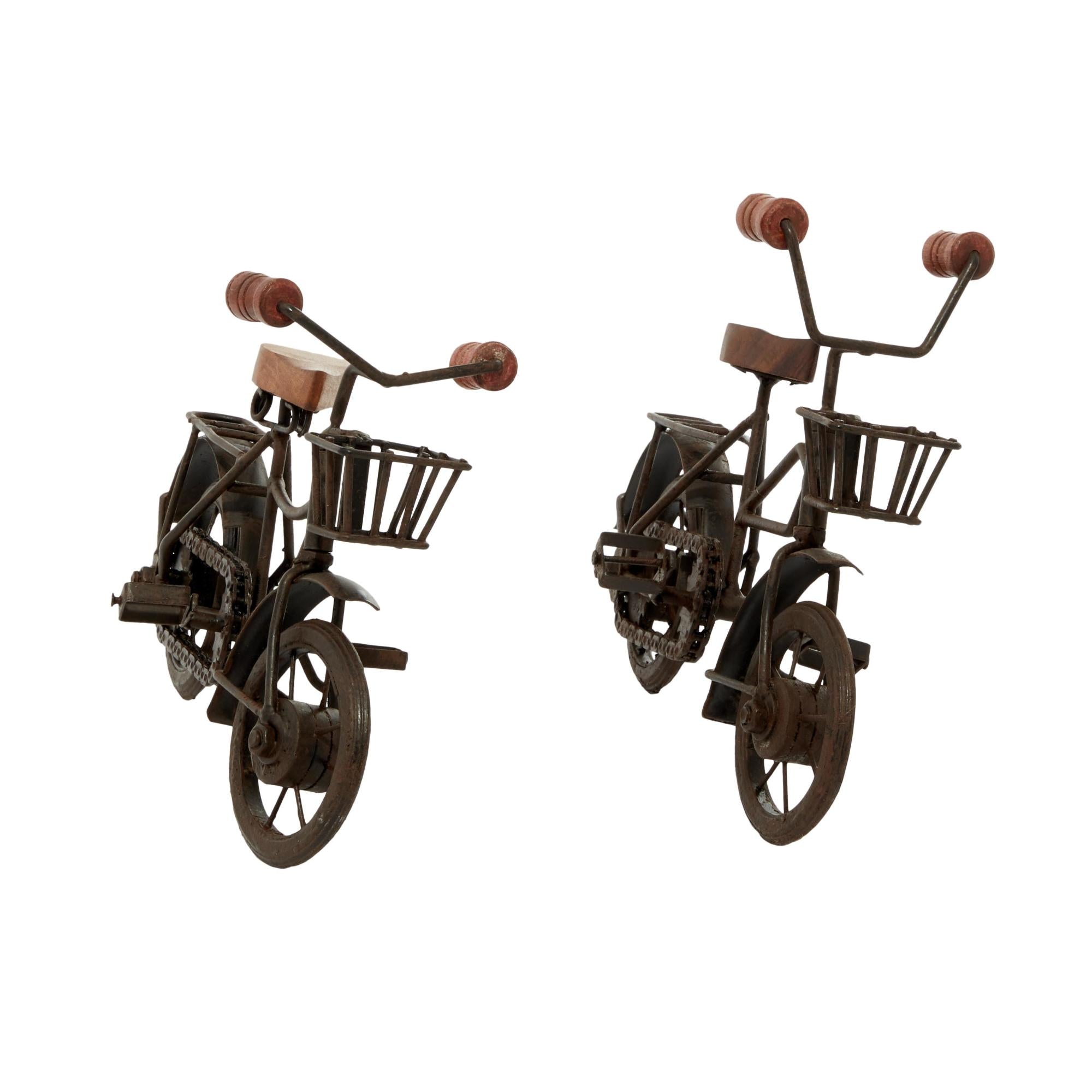 Set of 2 Bike Metal Decorative Sculpture with Wood Accents