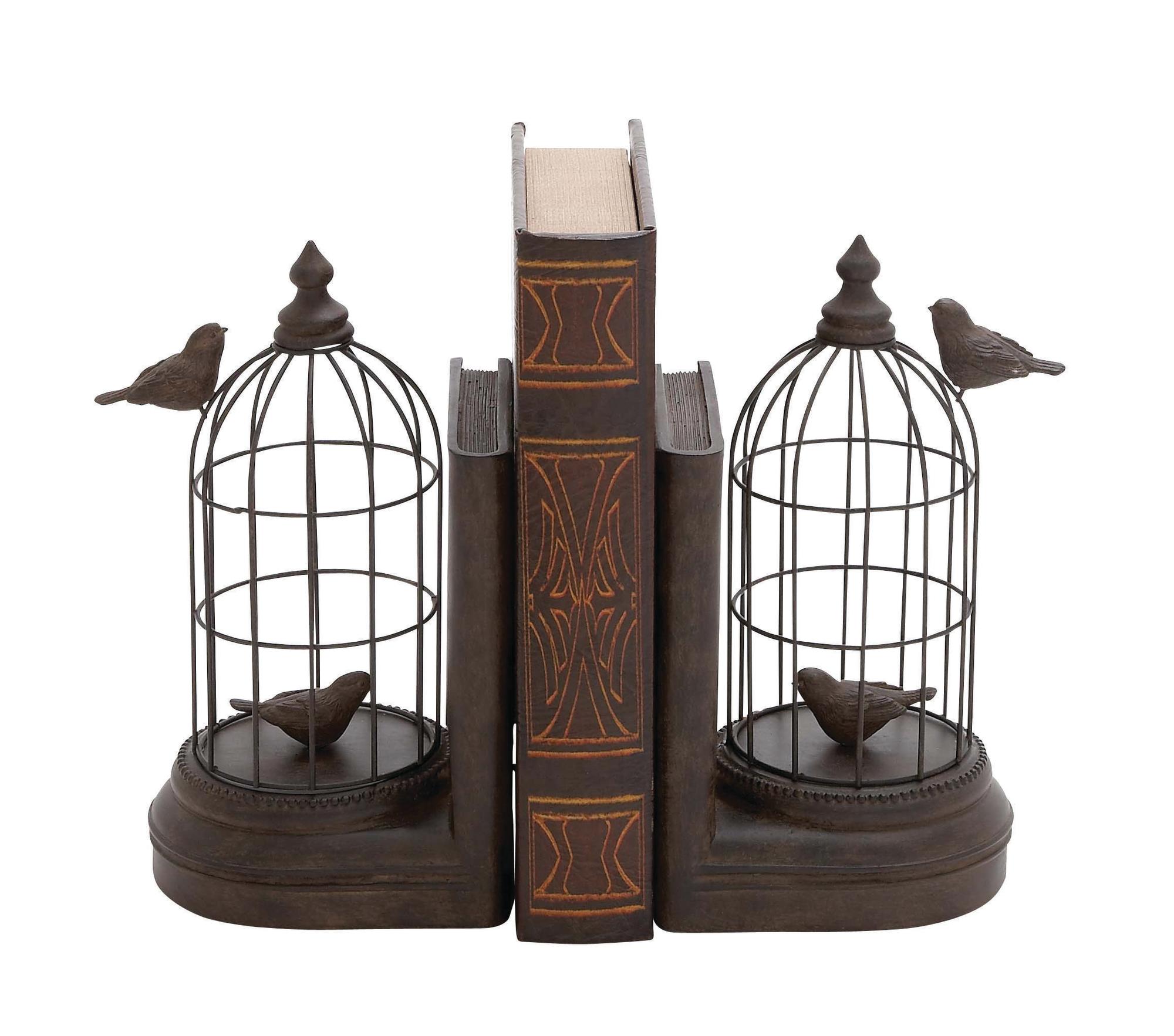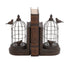 Set of 2 Bird Black Metal Decorative Bookends with Cages