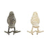 •Metal set of 2 sculptures showcases small standing bird figures with carved textures, making it an eye-catching piece