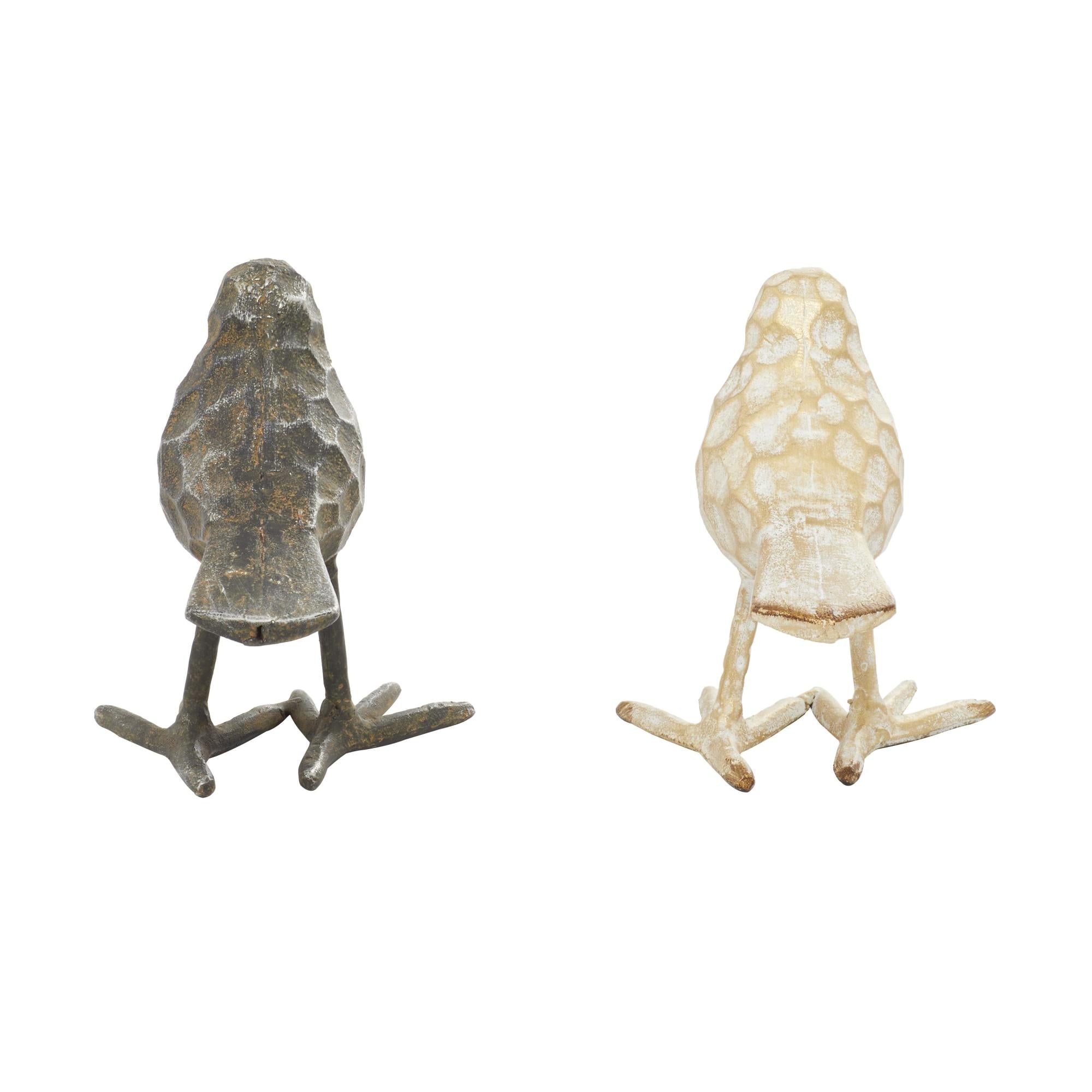 •These weathered home decor figurines display small standing birds with beautifully carved textured patterns