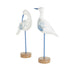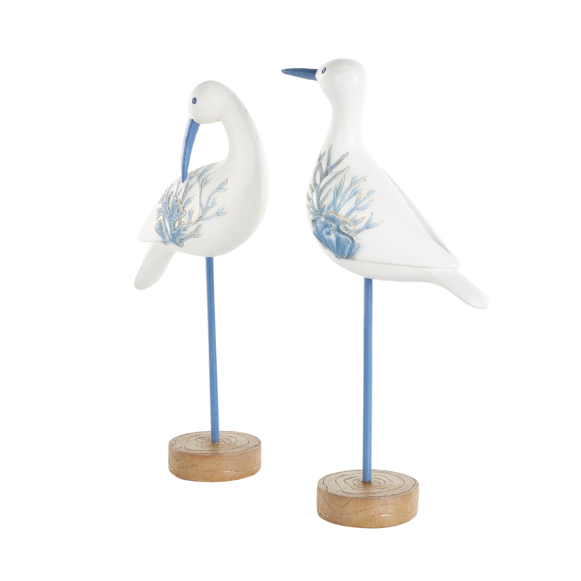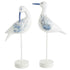 Set of 2 Bird White Polystone Decorative Sculpture with Blue Coral Patterns and Wood Inspired Bases