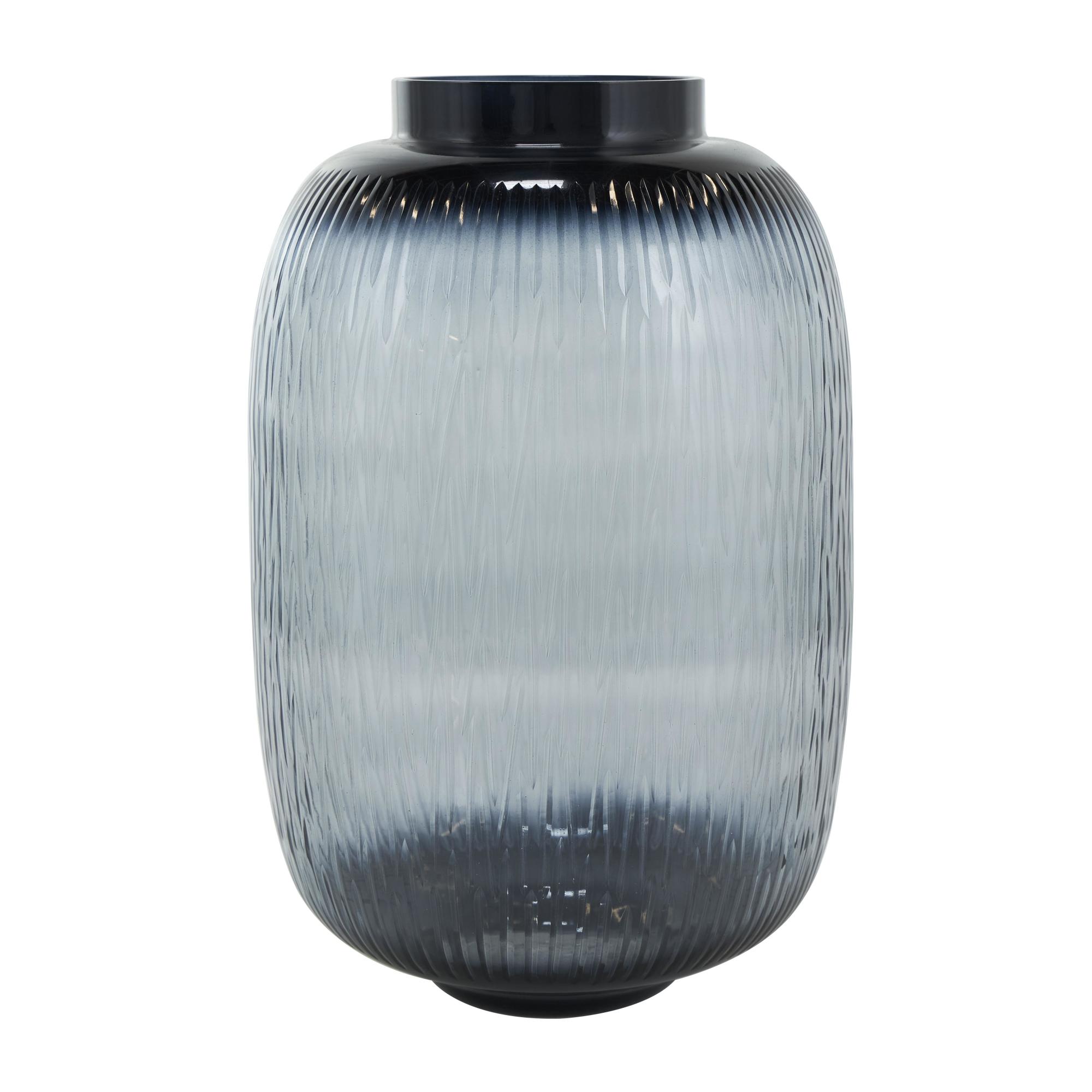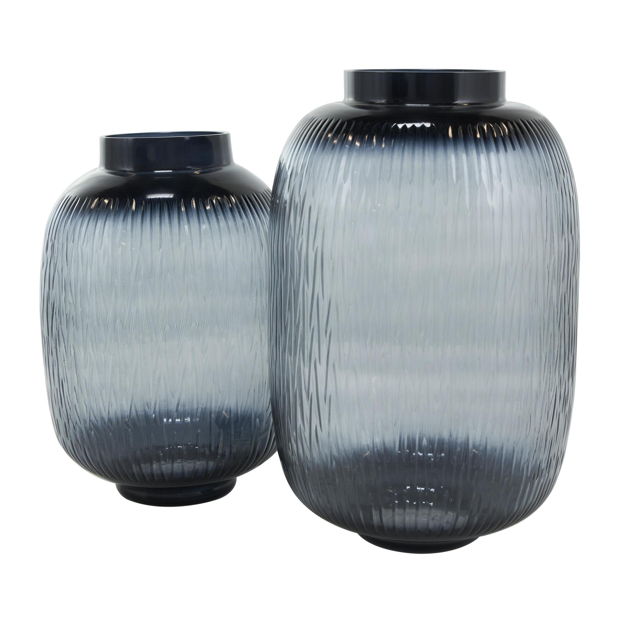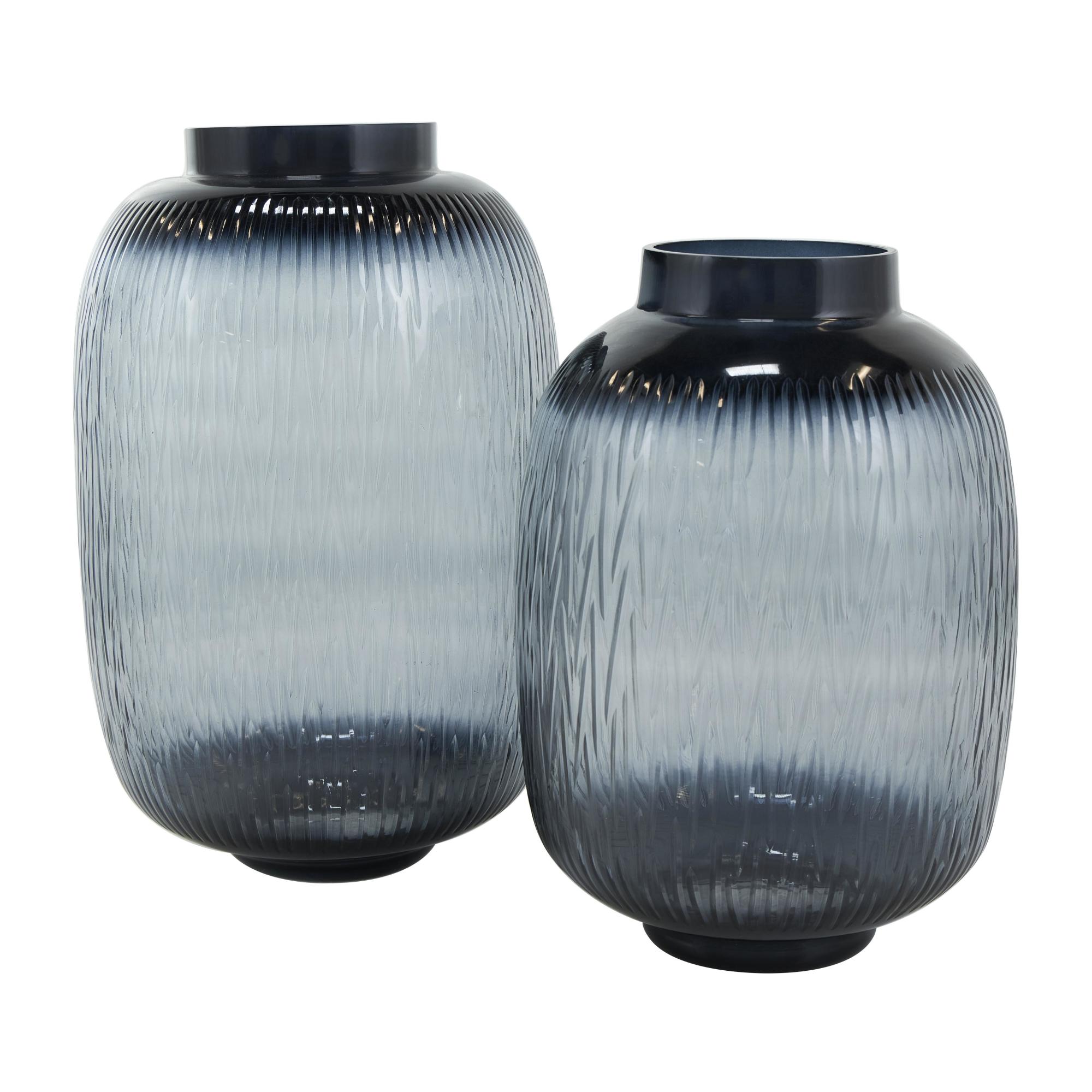 Set of 2 Black Glass Textured Ombre Decorative Vase