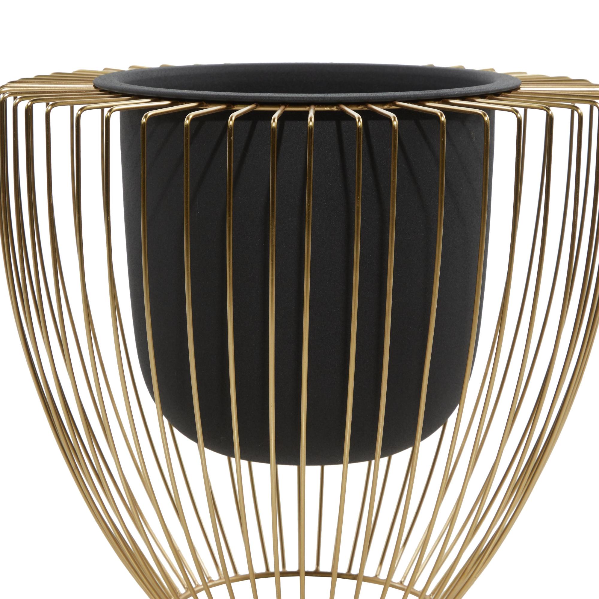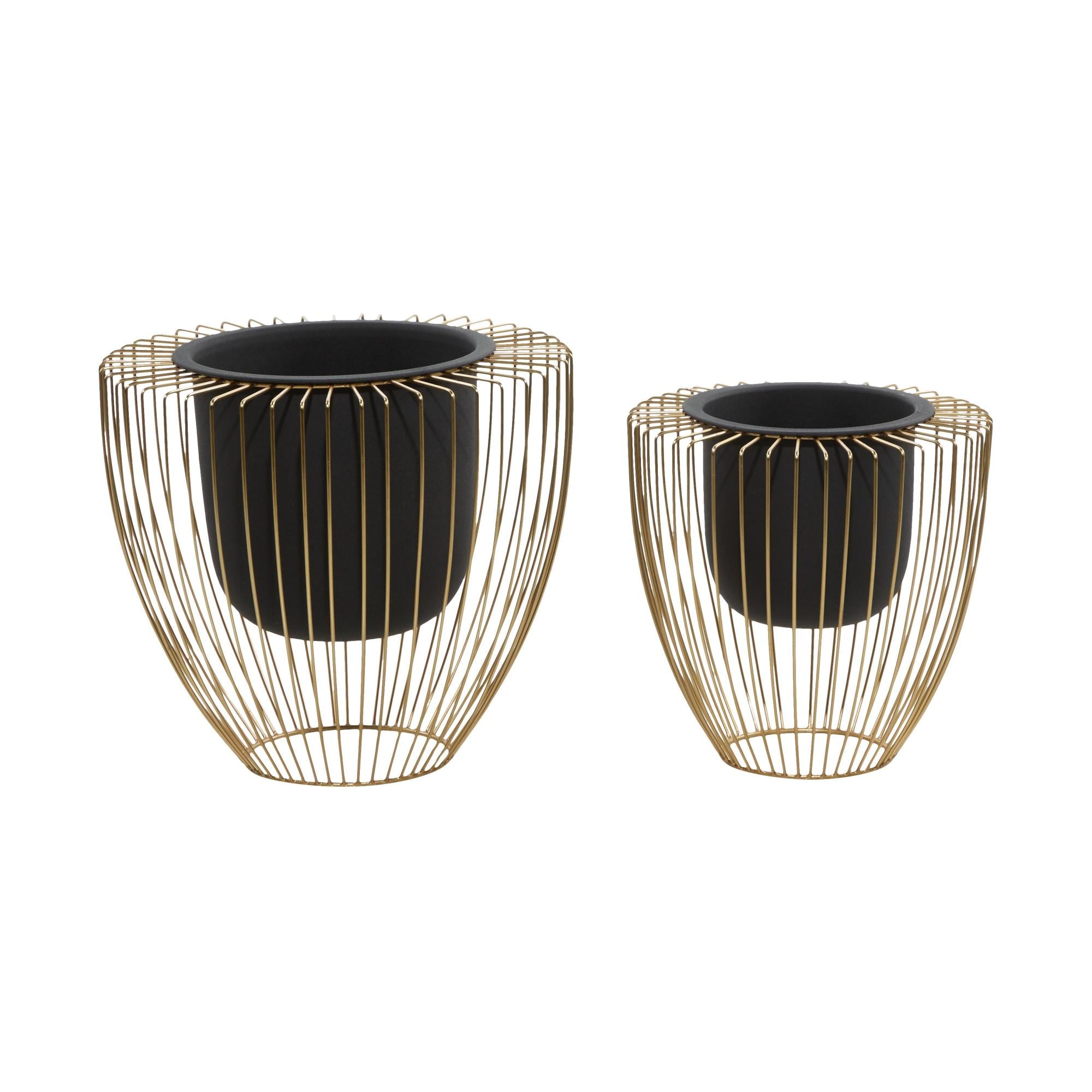 Set of 2 Black Metal Indoor Outdoor Planter with Removable Gold Wire Stand