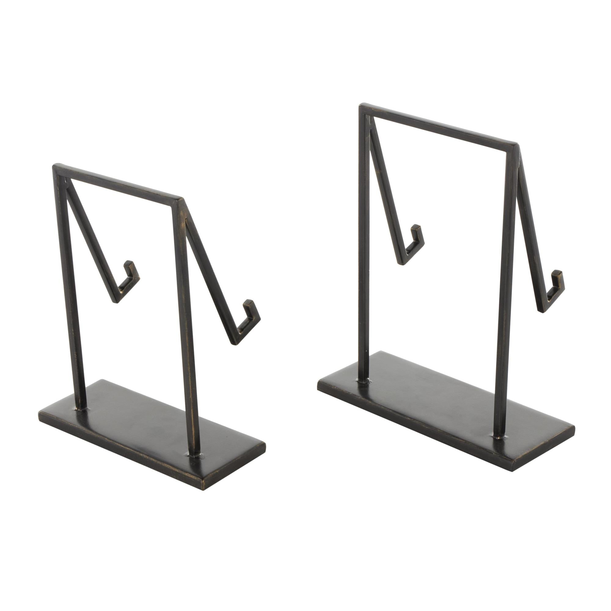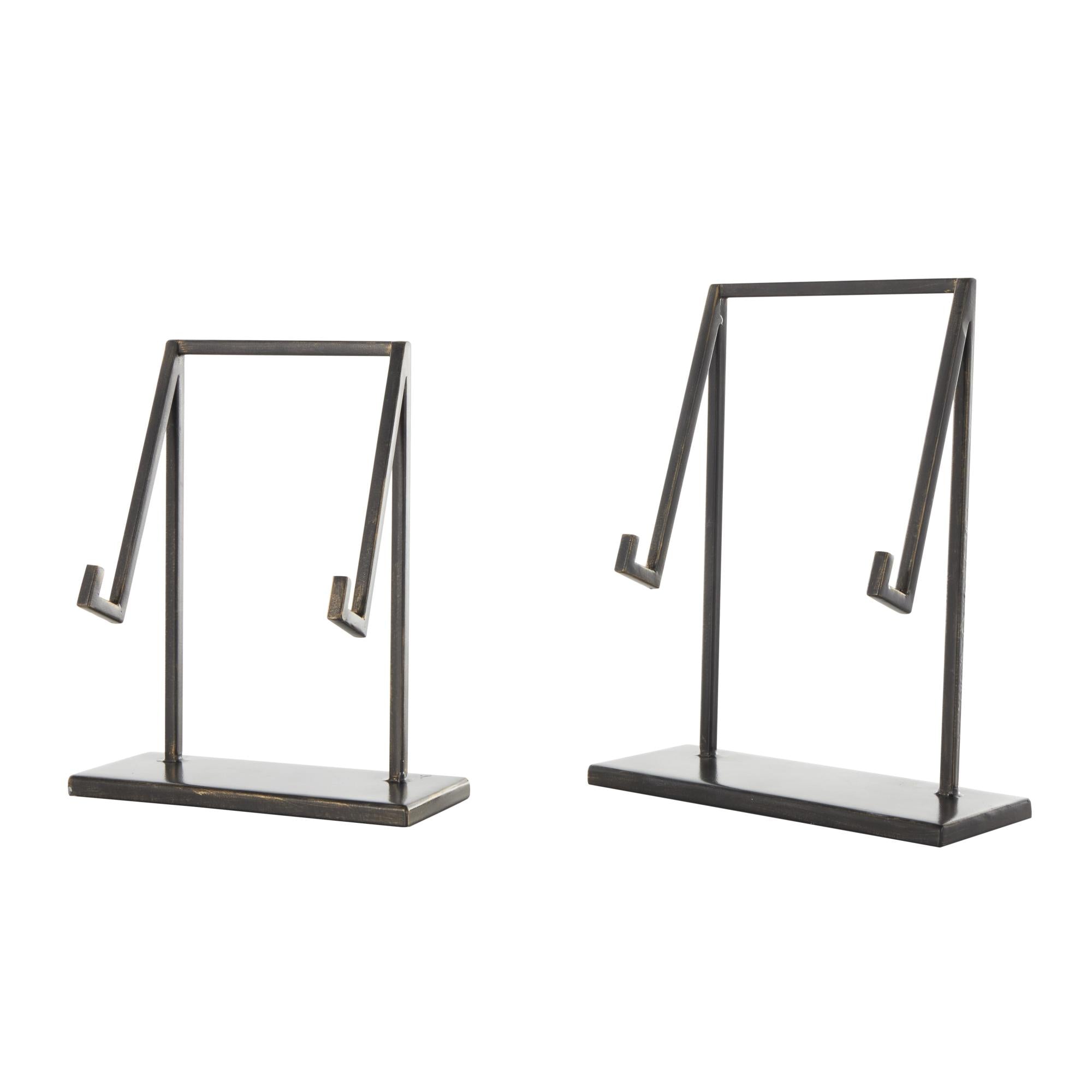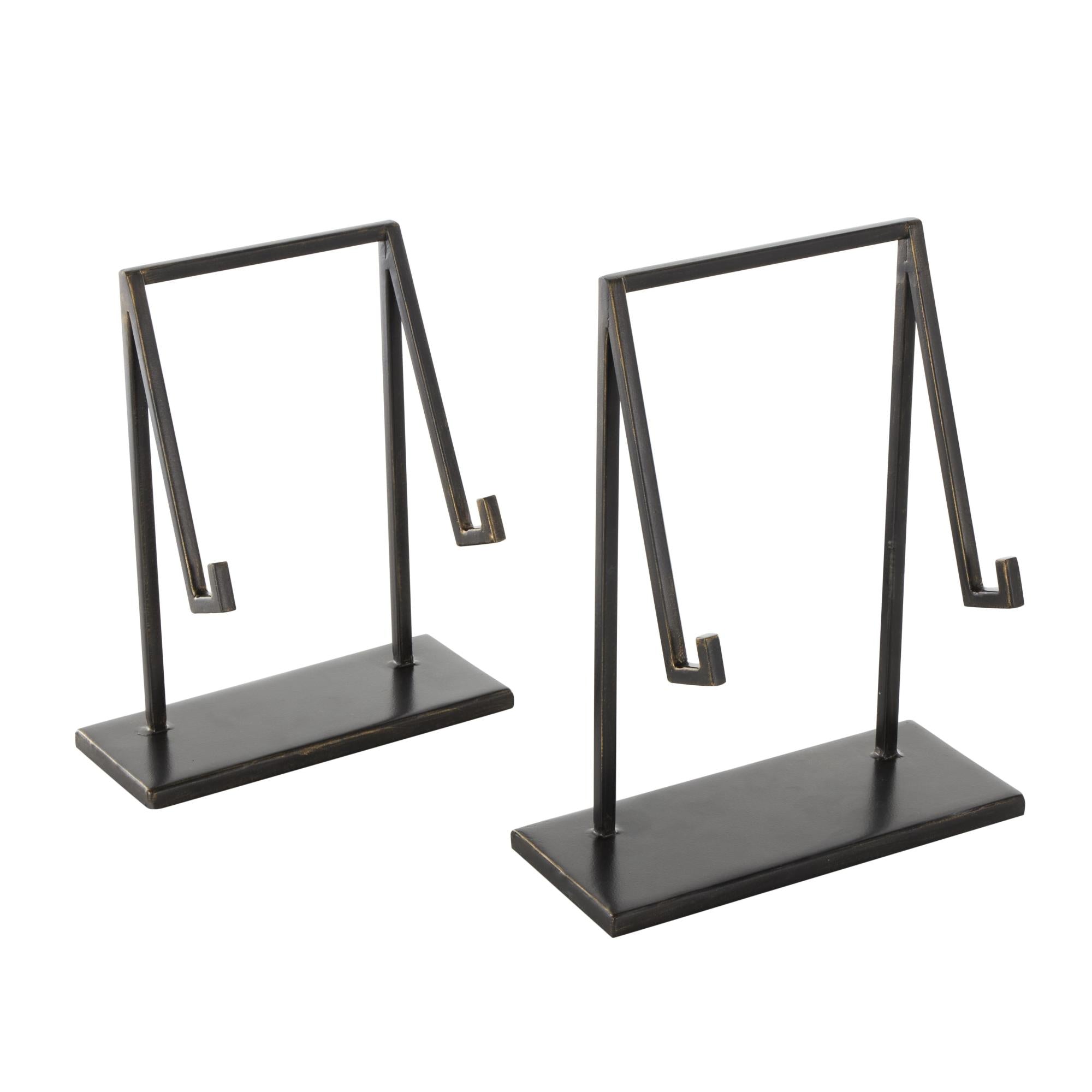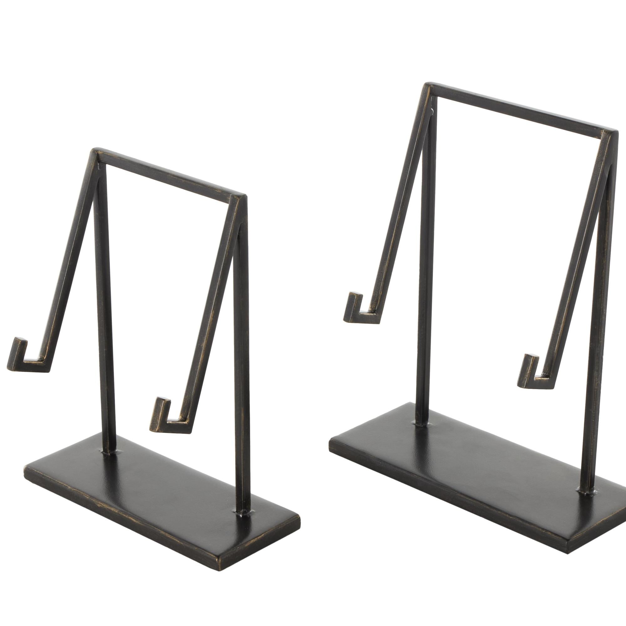 Set of 2 Black Metal Modern Tabletop Abstract Display Easel with Gold Accents