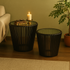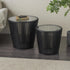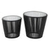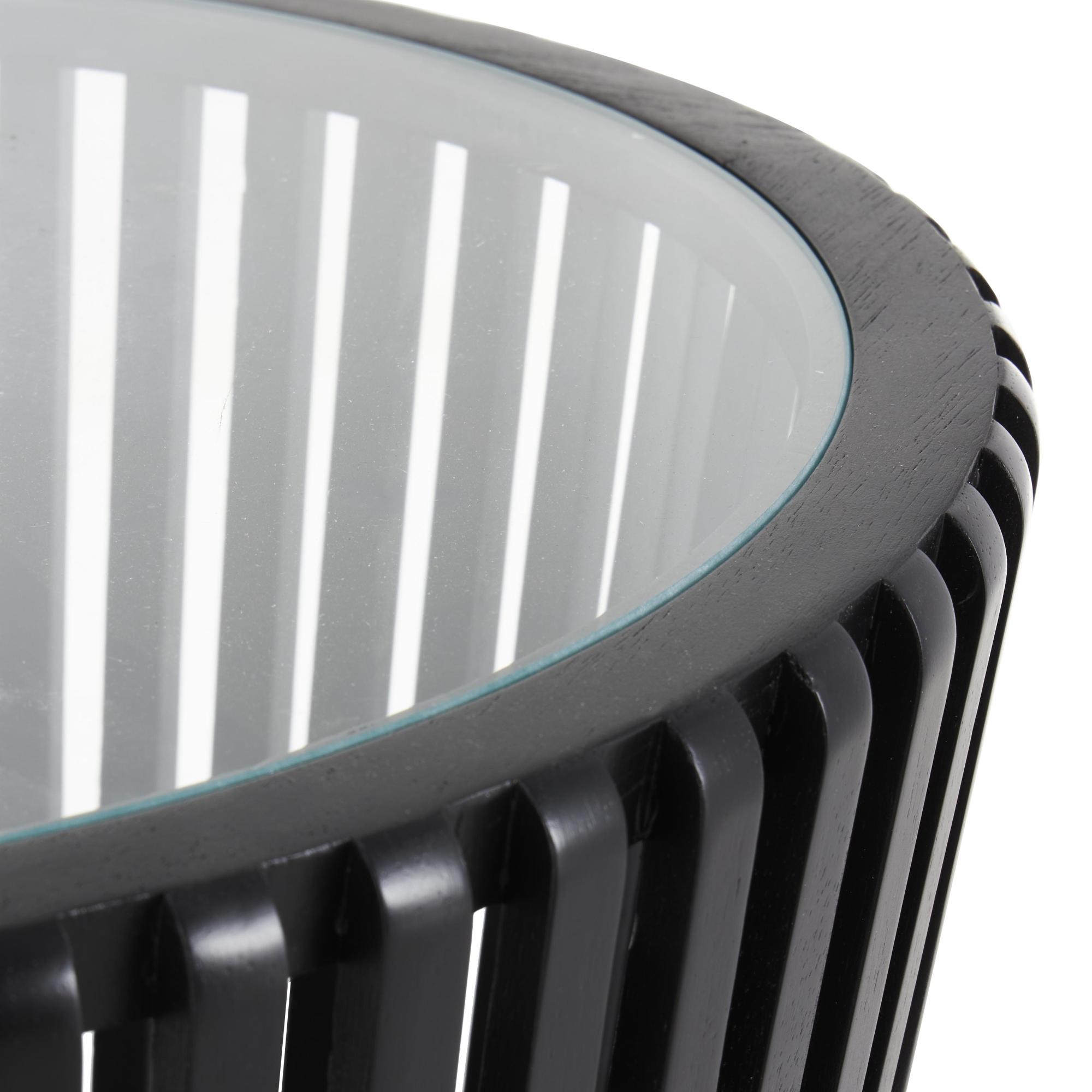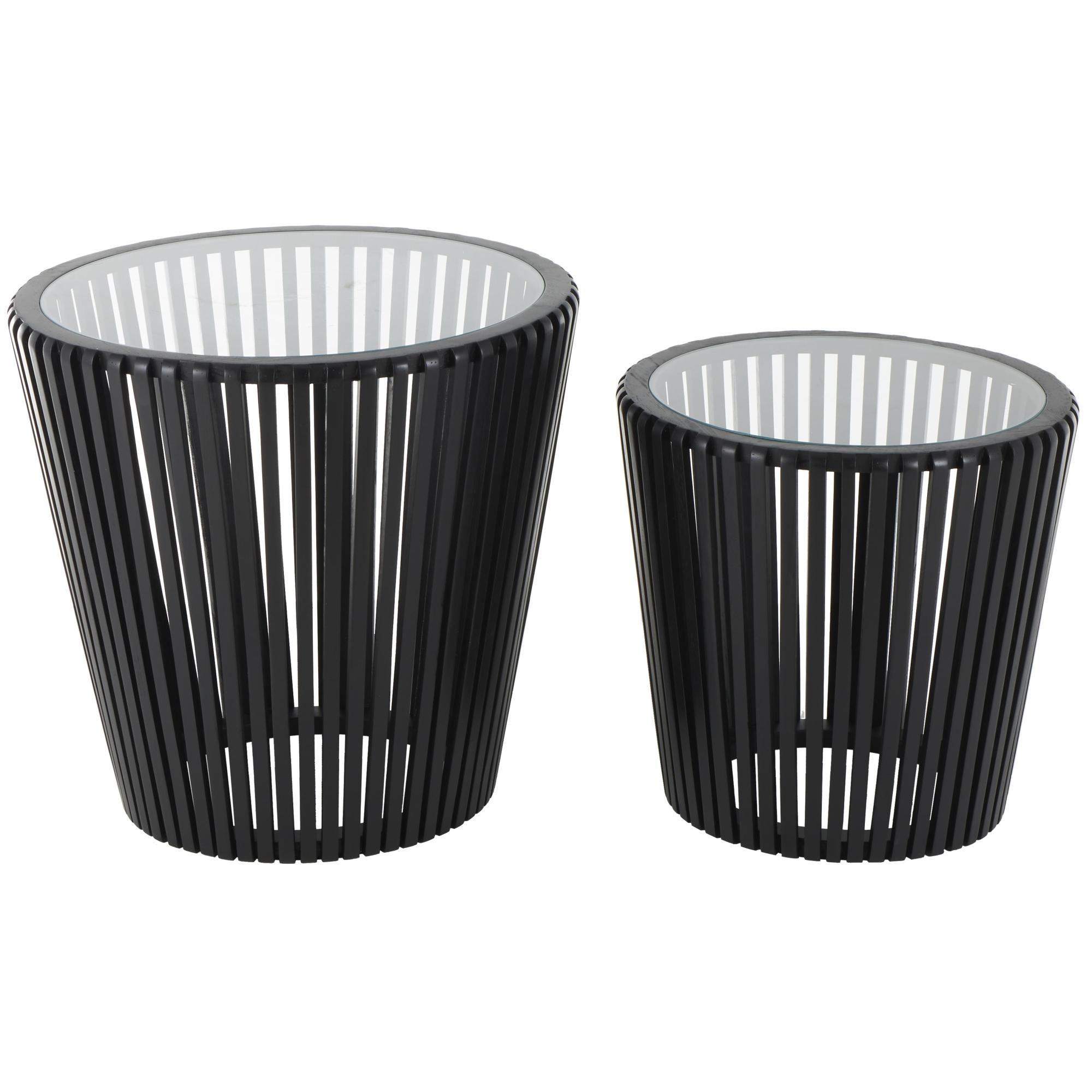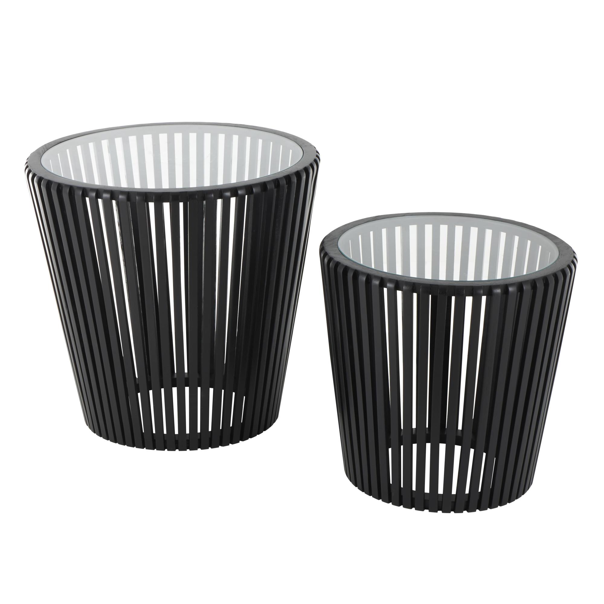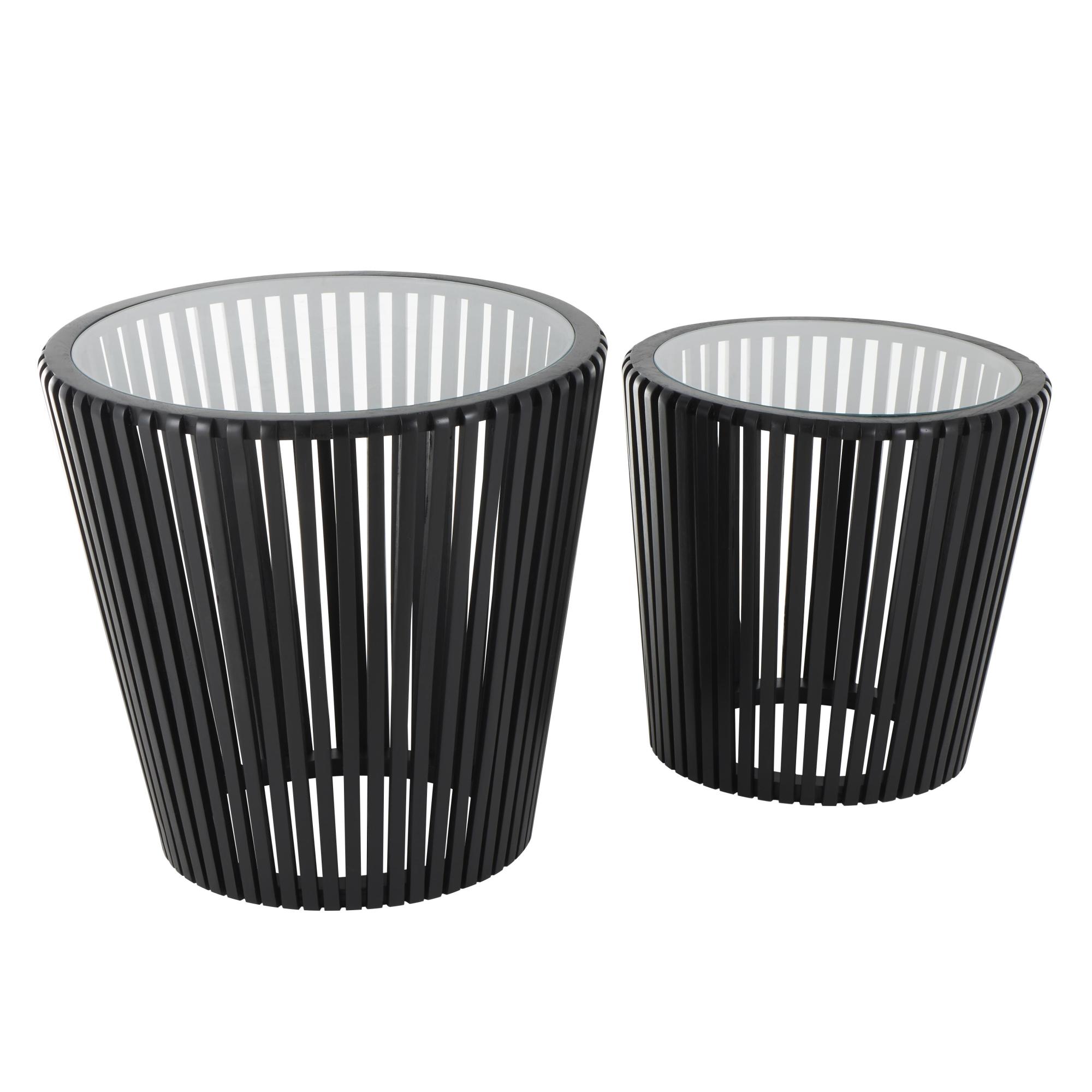 Set of 2 Black Wood Cage Inspired Side End Accent Table with Clear Glass Tabletop