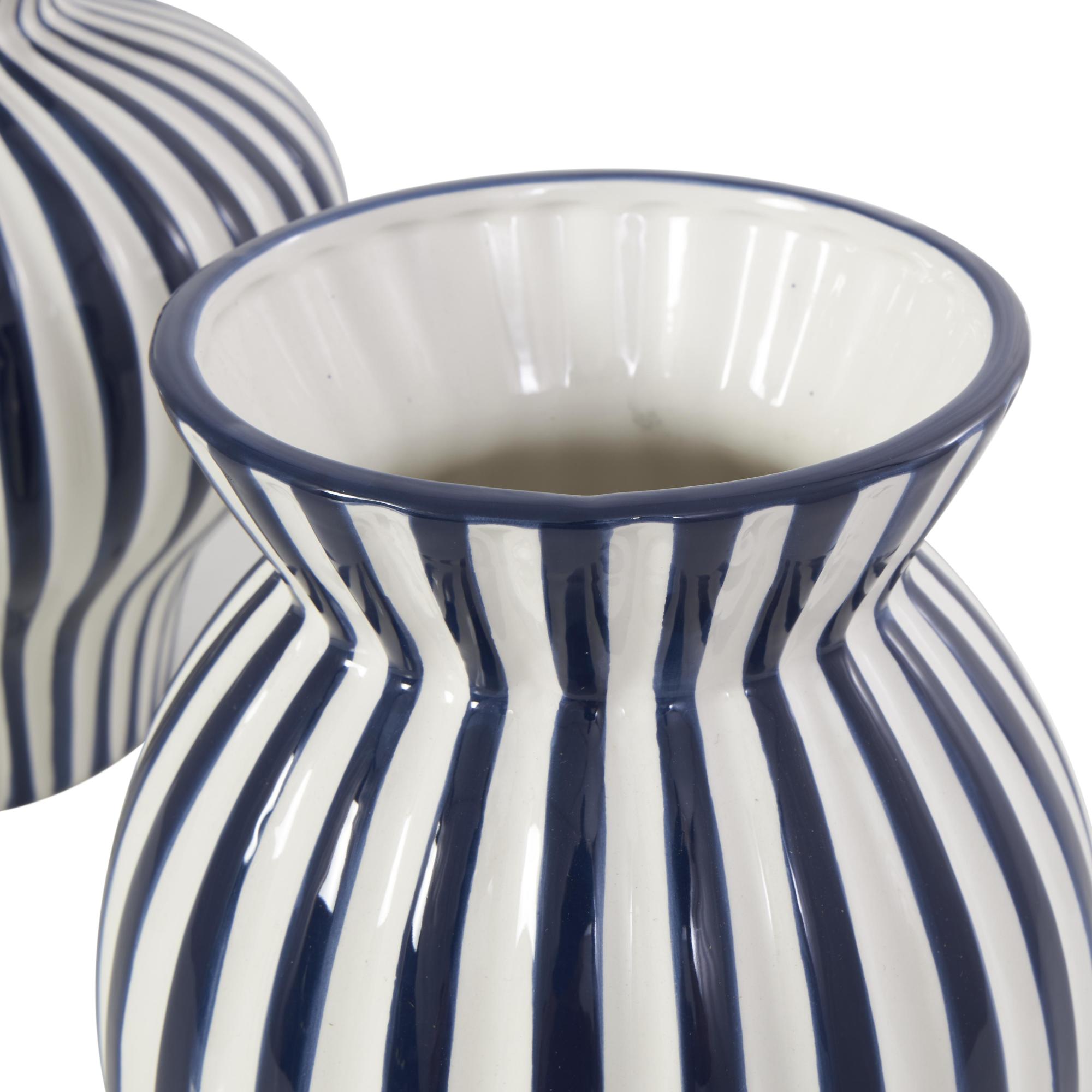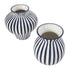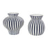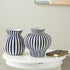 Set of 2 Blue Ceramic Striped Rounded Decorative Vase with Varying Shapes