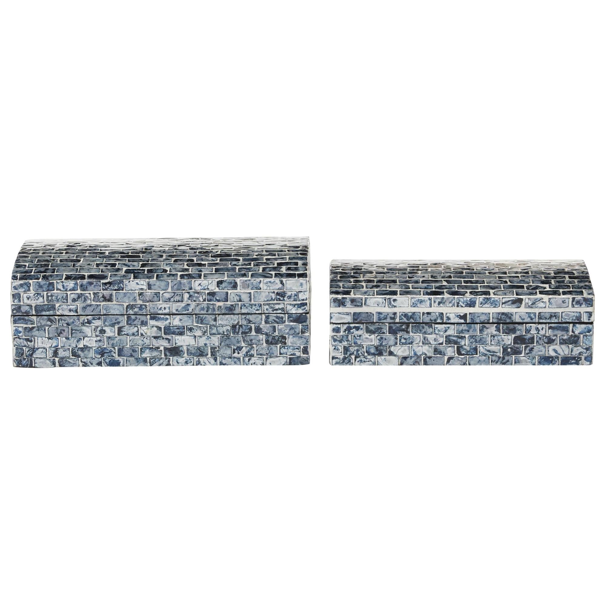 •Mother of pearl set of 2 boxes features an elegant design inspired by coastal style, accentuated by mother of pearl inlay and mussel shell edge patterns
