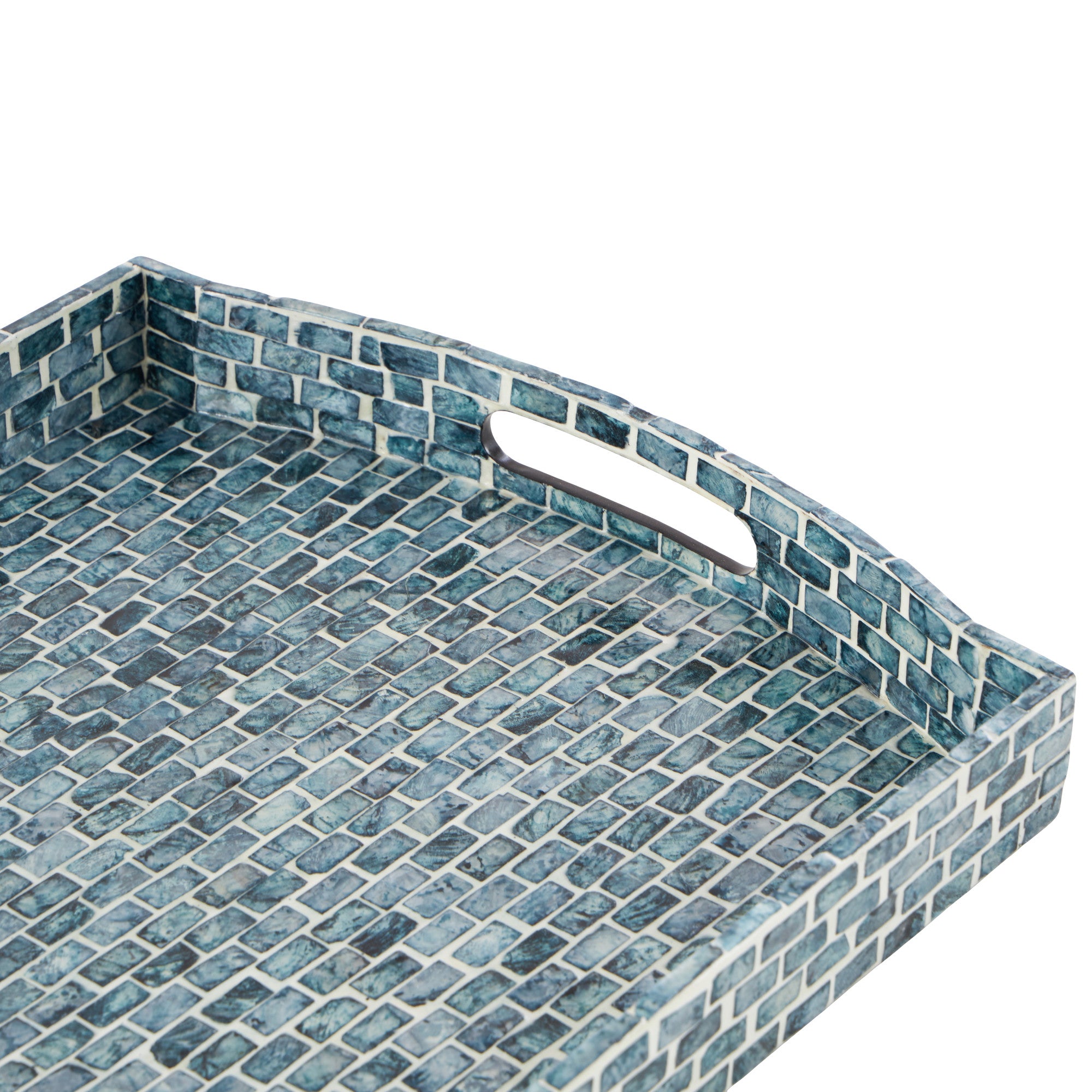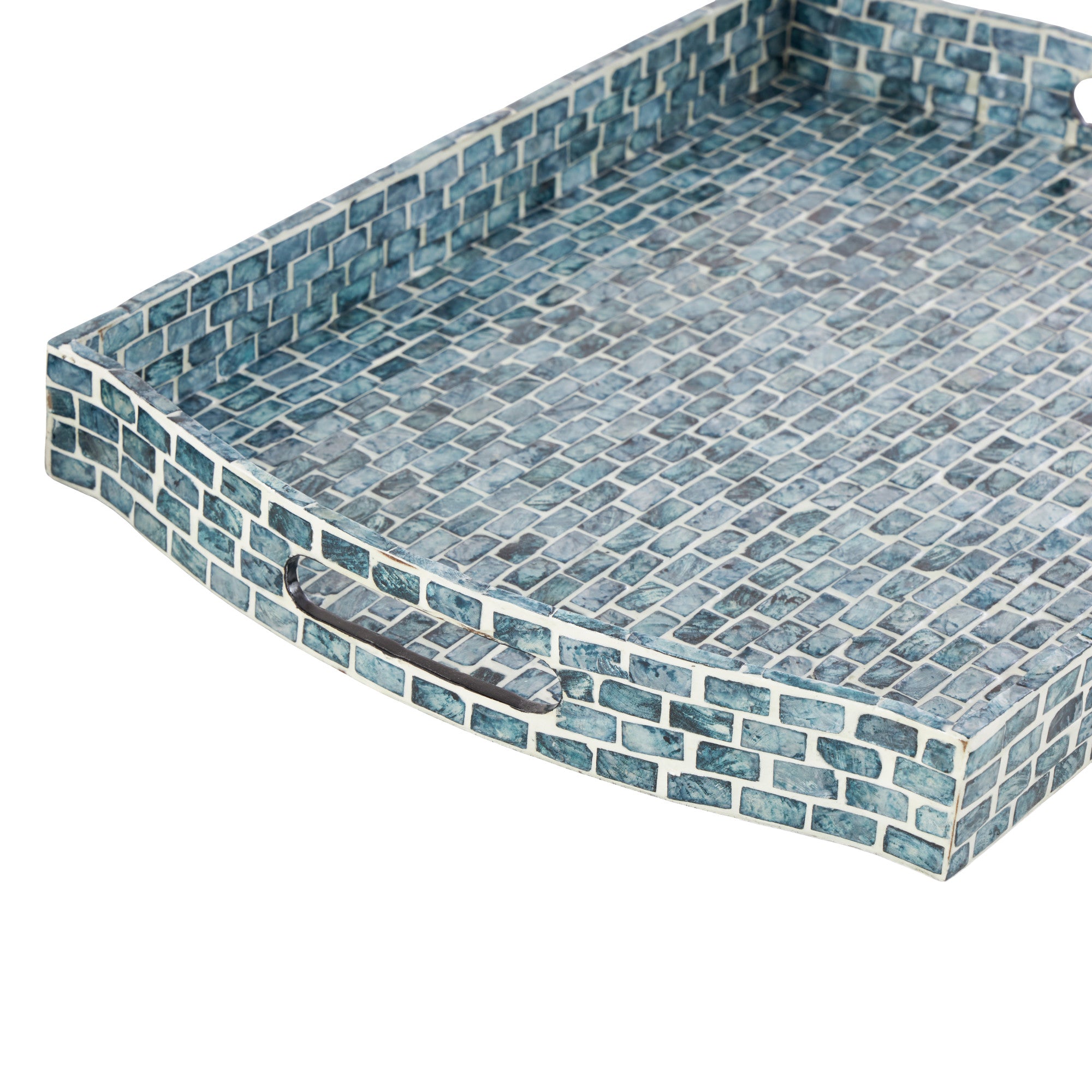 •Each piece in the wood set of 2 trays features a mosaic mother of pearl inlay on wood, offering a unique coastal vibe to any setting